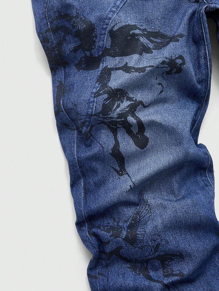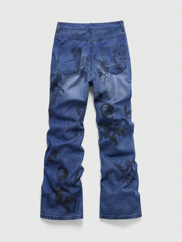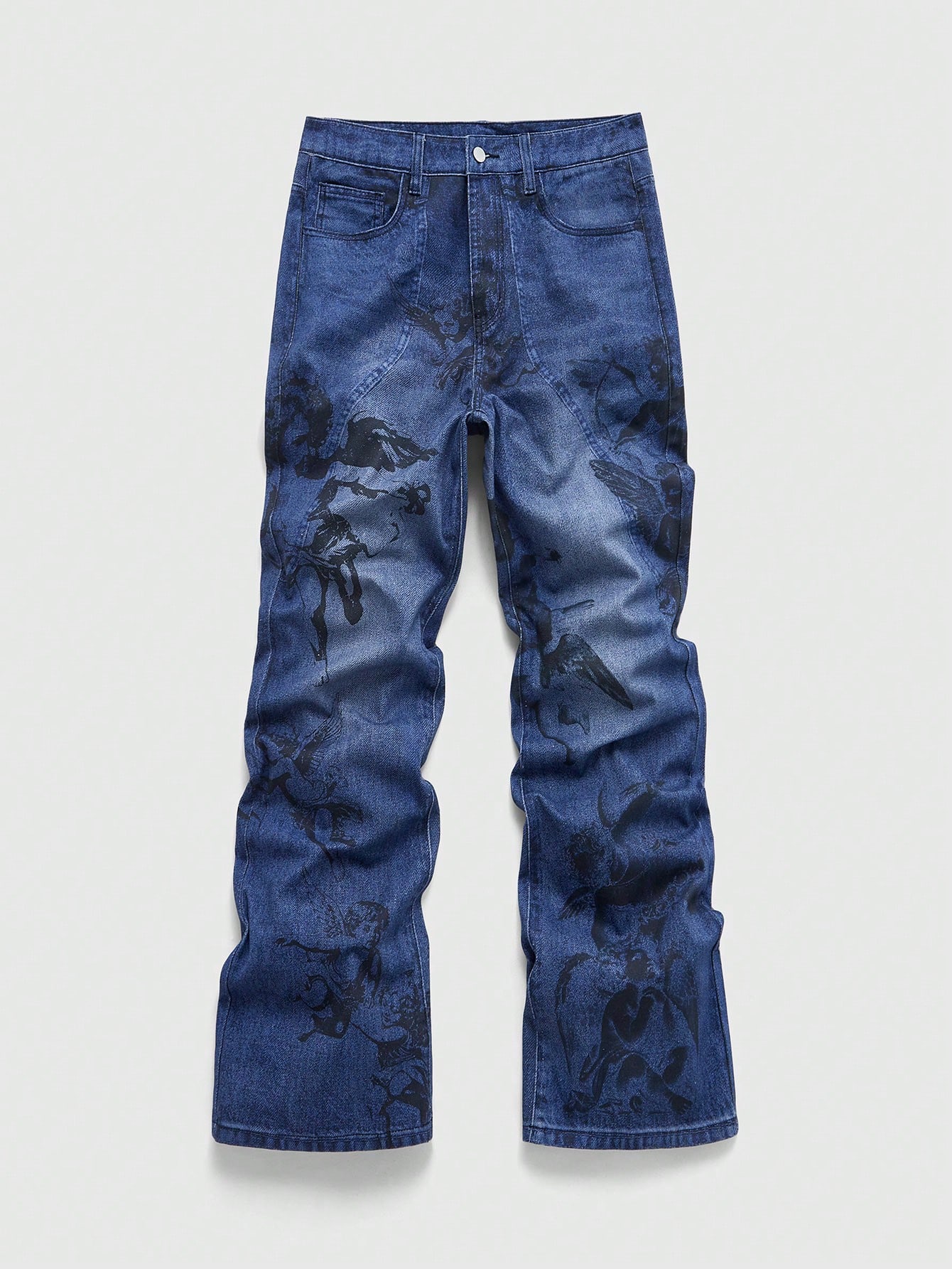 Street Life بنطلون جينز أزرق ذو خصر عالي وطباعة رجعية أنيقة للرجال