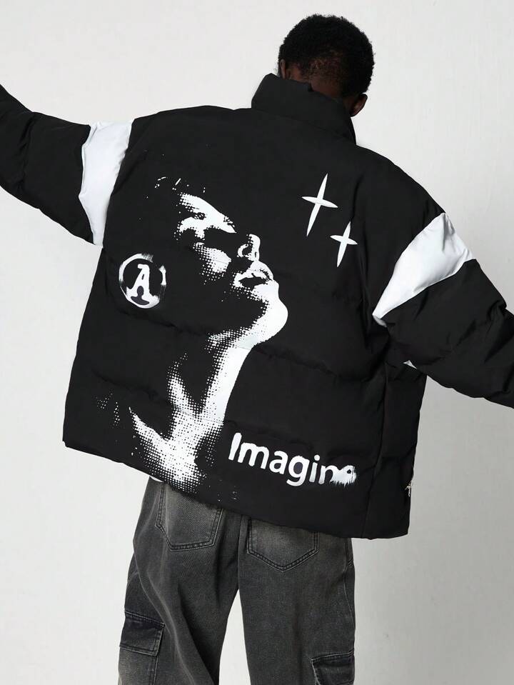 Street Life معطف كاجوال مُبطن مزين بطباعة شكل للرجال، سحاب أمامي وجيب، للارتداء اليومي