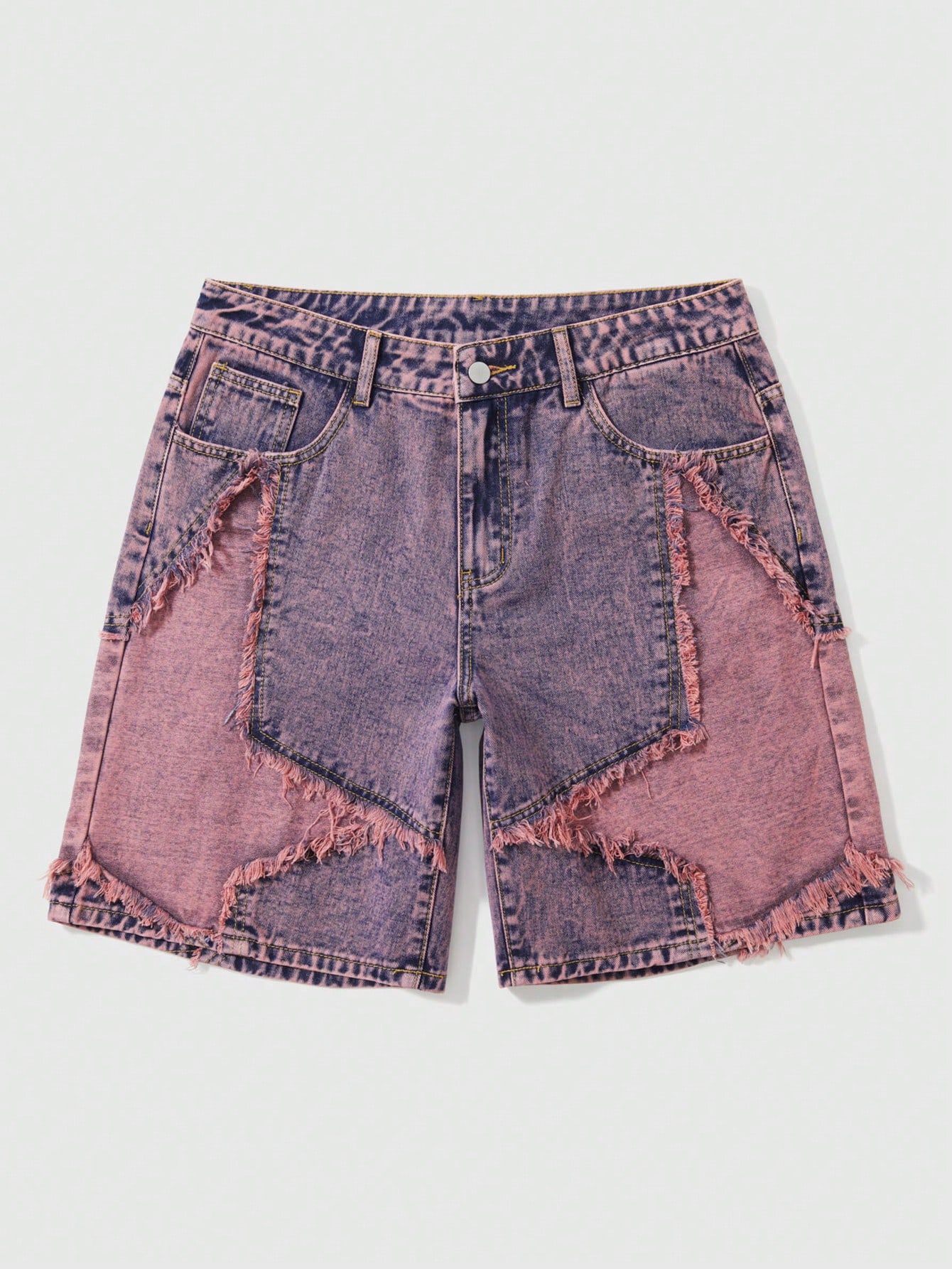 Street Life شورتات جينز رجالية عادية مريحة مع جيب به علامة نجمة خماسية الزوايا ومثقب