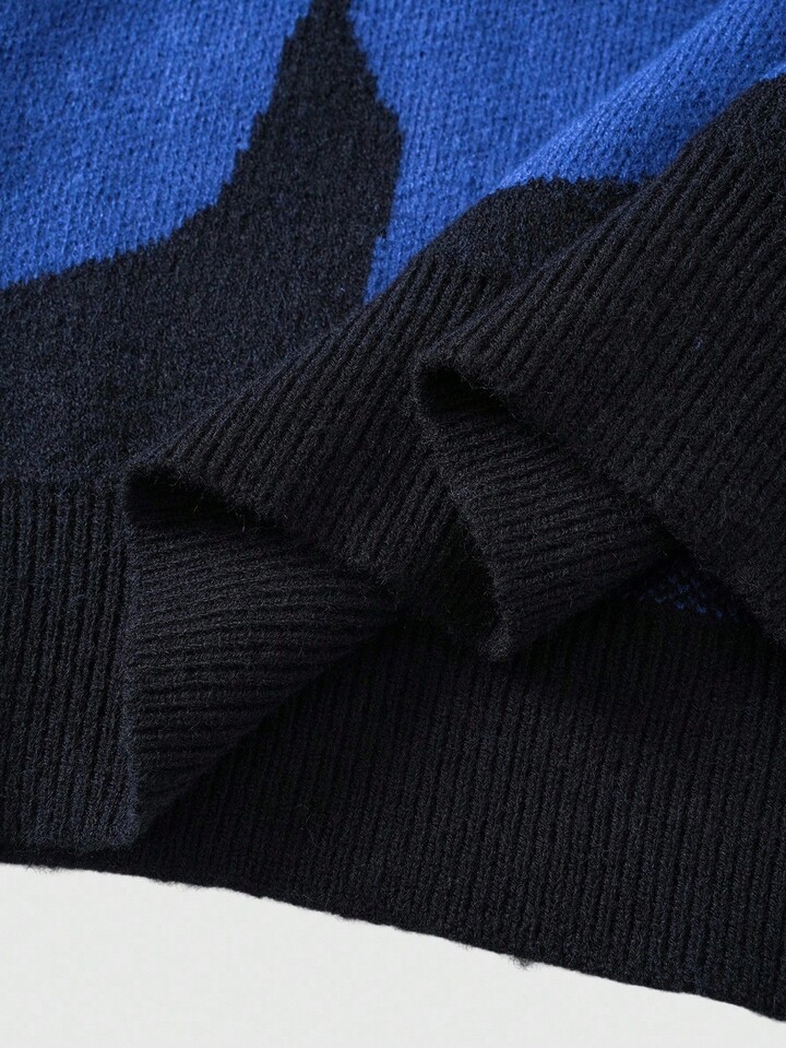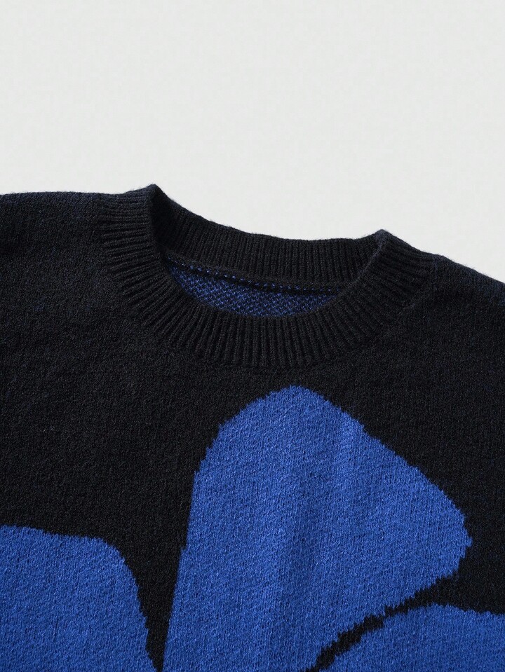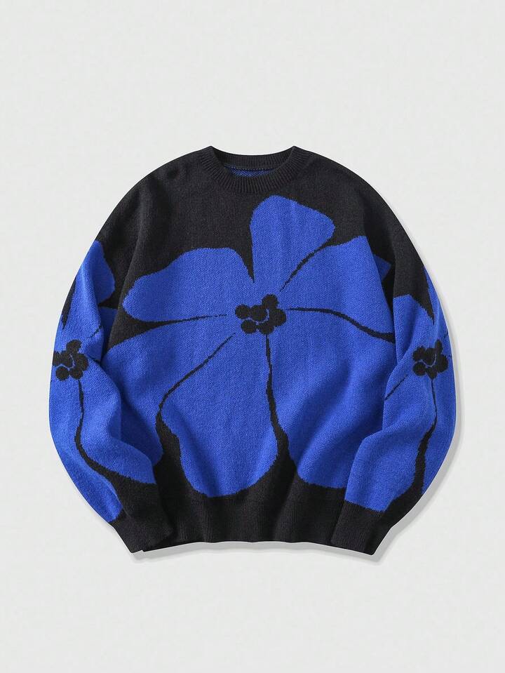 Street Life كنزة صوفية كاجوال فضفاضة مصنوعة من الجاكار المزخرف بالزهور، خريف/شتاء