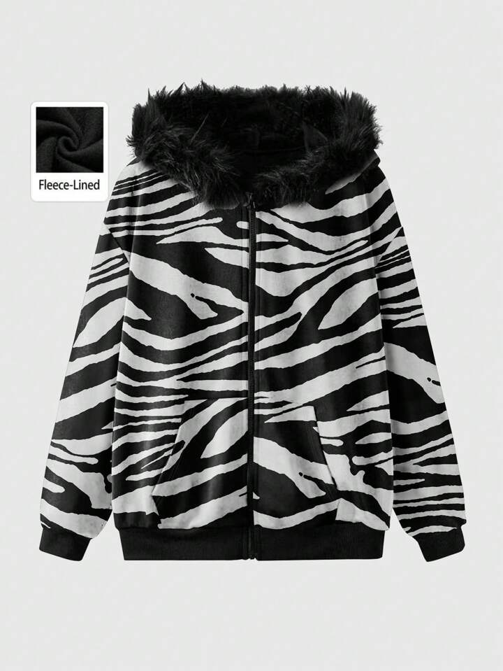 Street Life هوديةكاجوال طويلة الأكمام من القطيفة مع سحاب أمامي للرجال