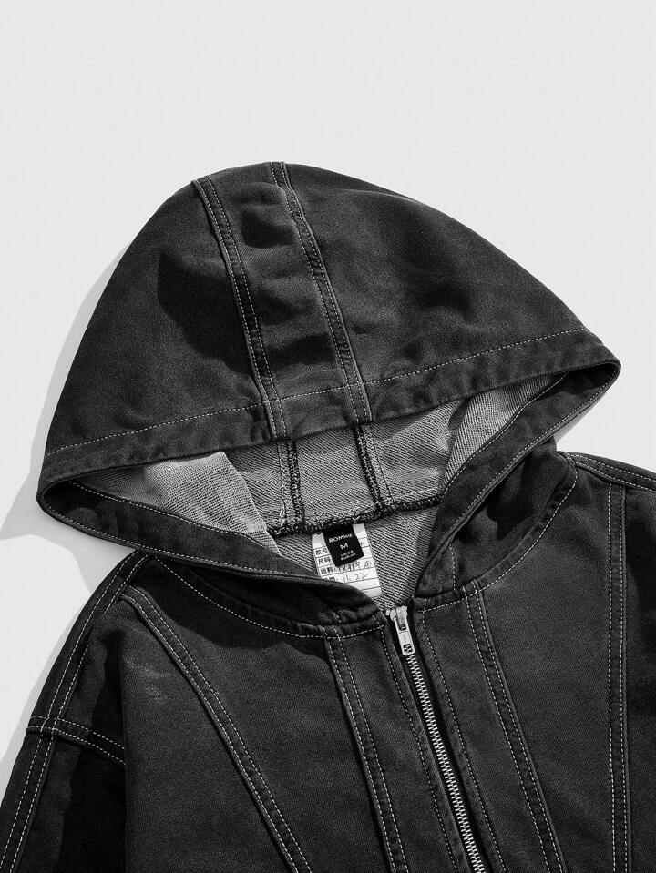 Street Life جاكيت هودي جينز طويلة الأكمام بسحاب أمامي وجيوب، كاجوال للرجال