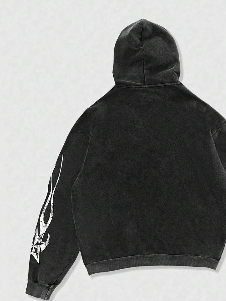Street Life هودي فضفاض قصير مطبوع بكاريكاتير نكي مختلط للرجال