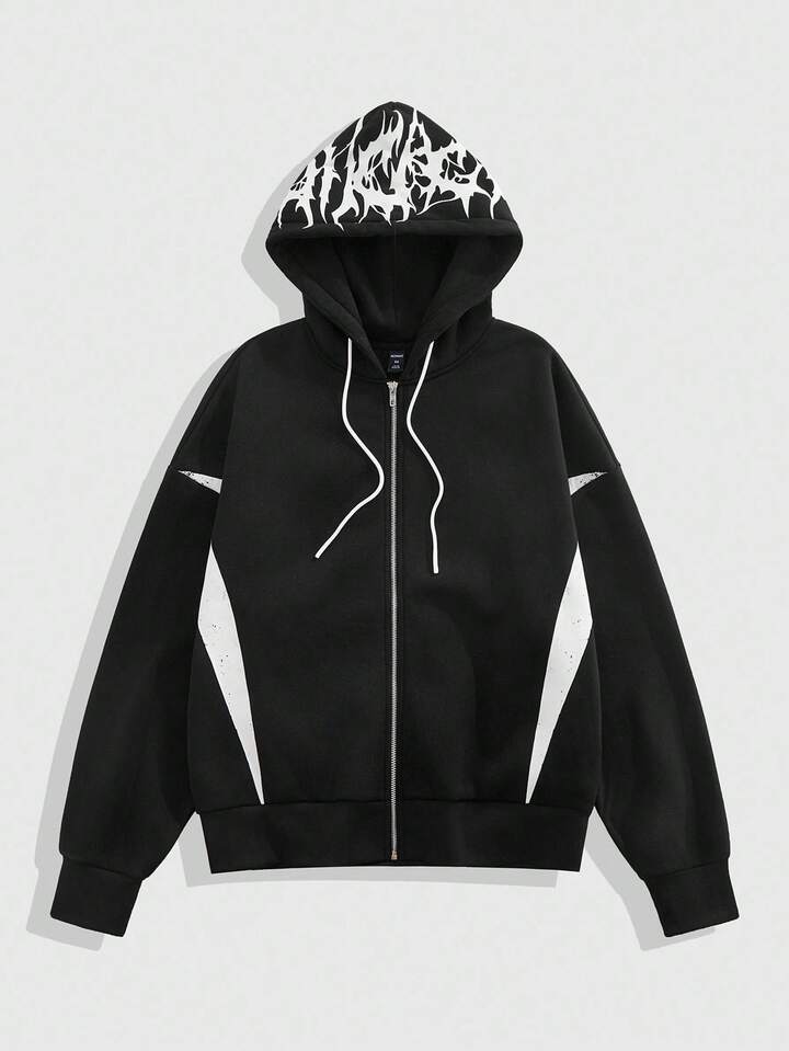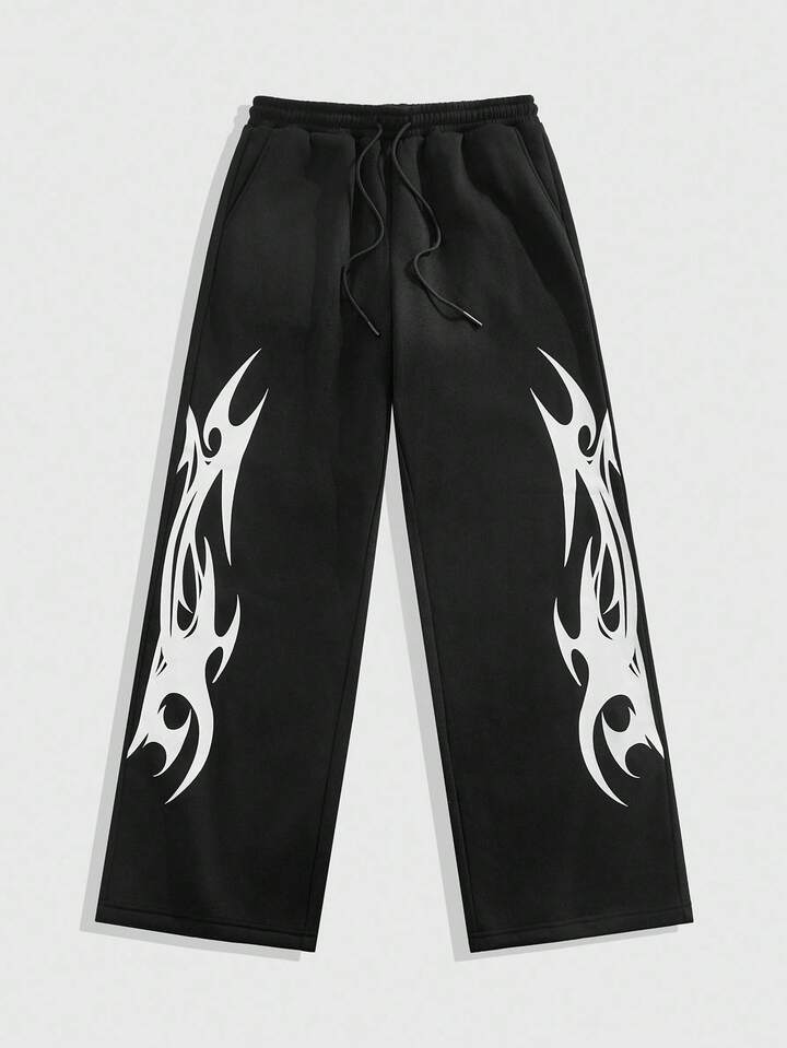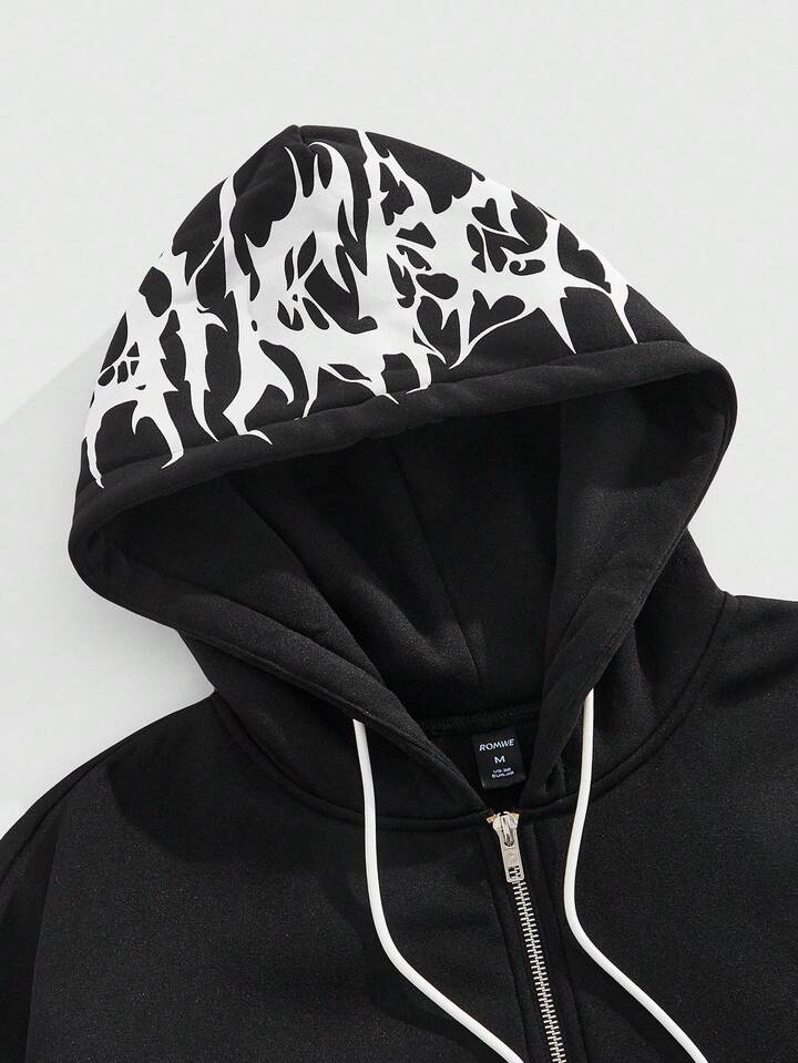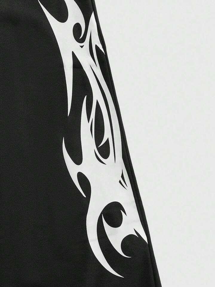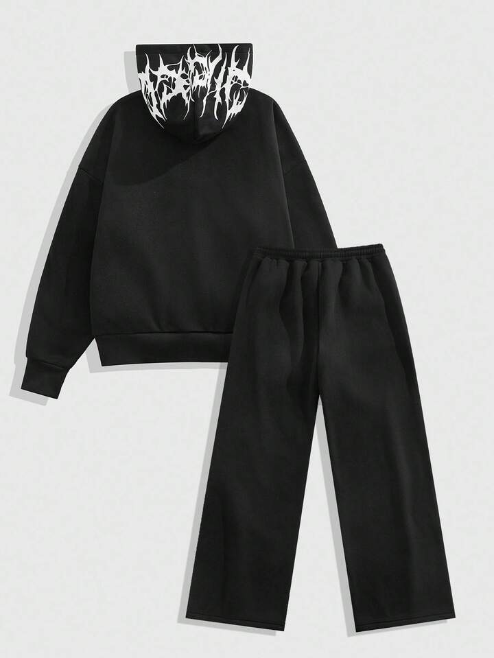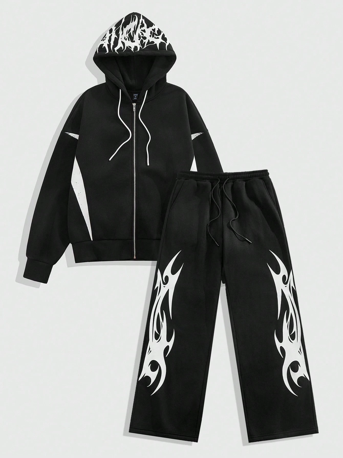 Street Life طقم هودي مطبوع بطباعة هندسية وبنطلون رياضي للرجال، خريف