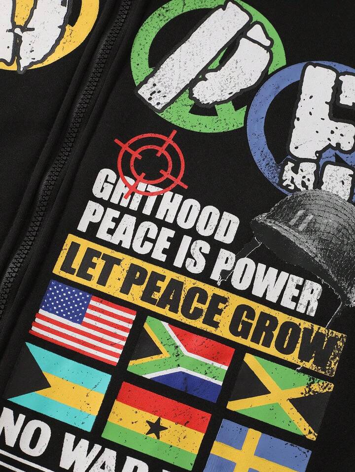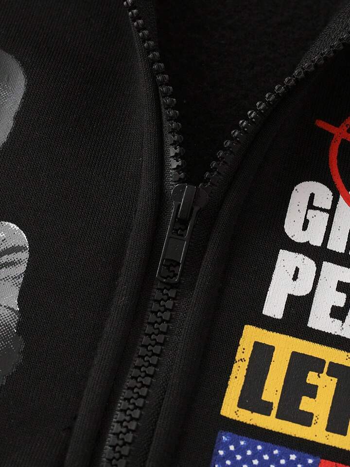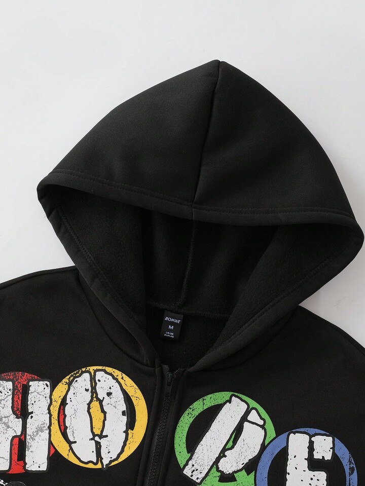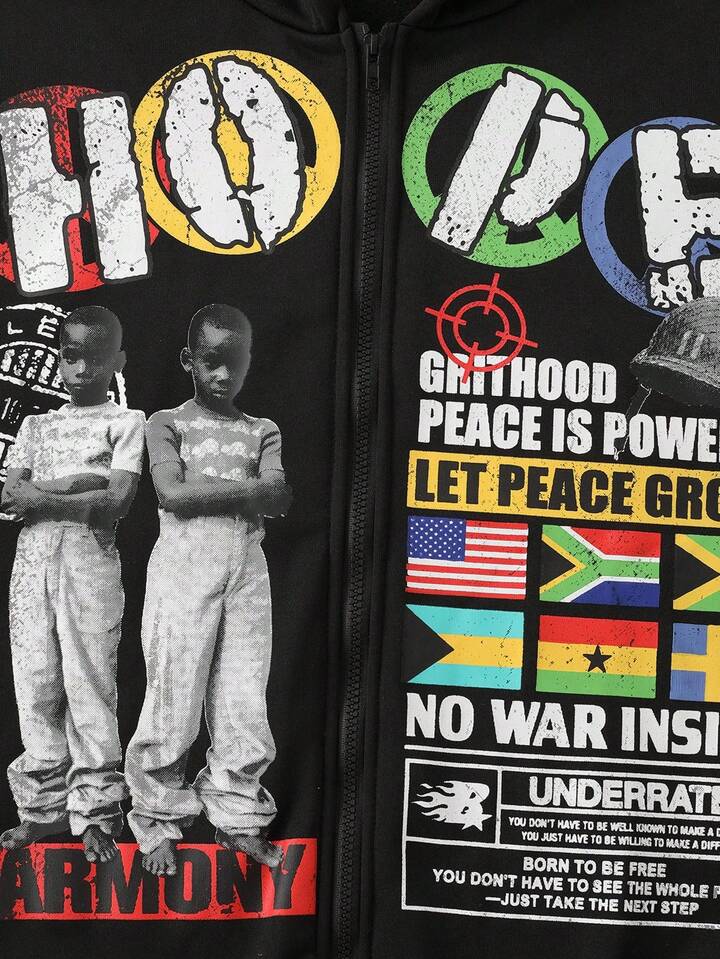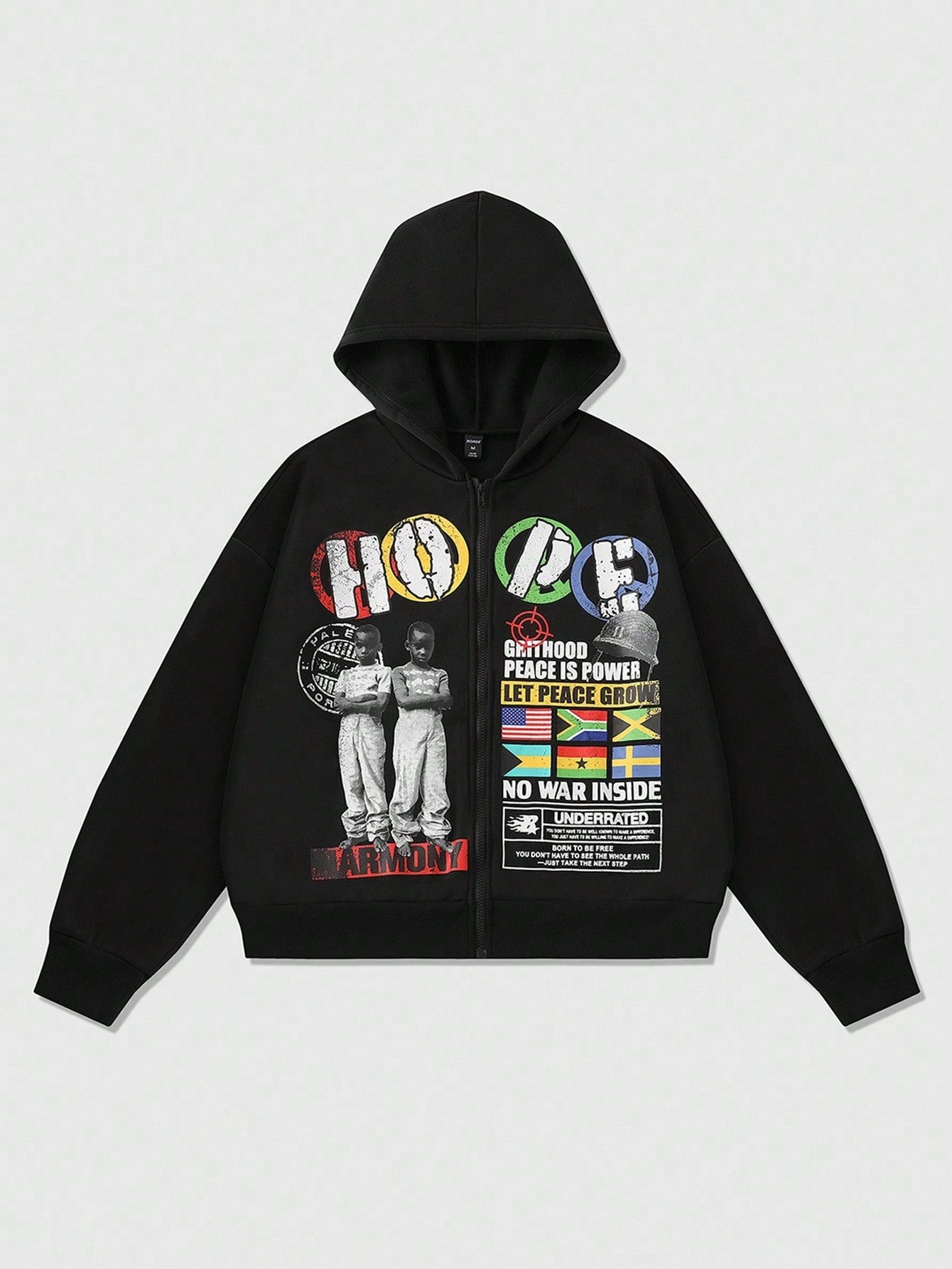 Street Life هودي رجالي مطبوع عليه شعار جرافيكي، بسحاب، بطراز شارع رجعي، خريف وشتاء