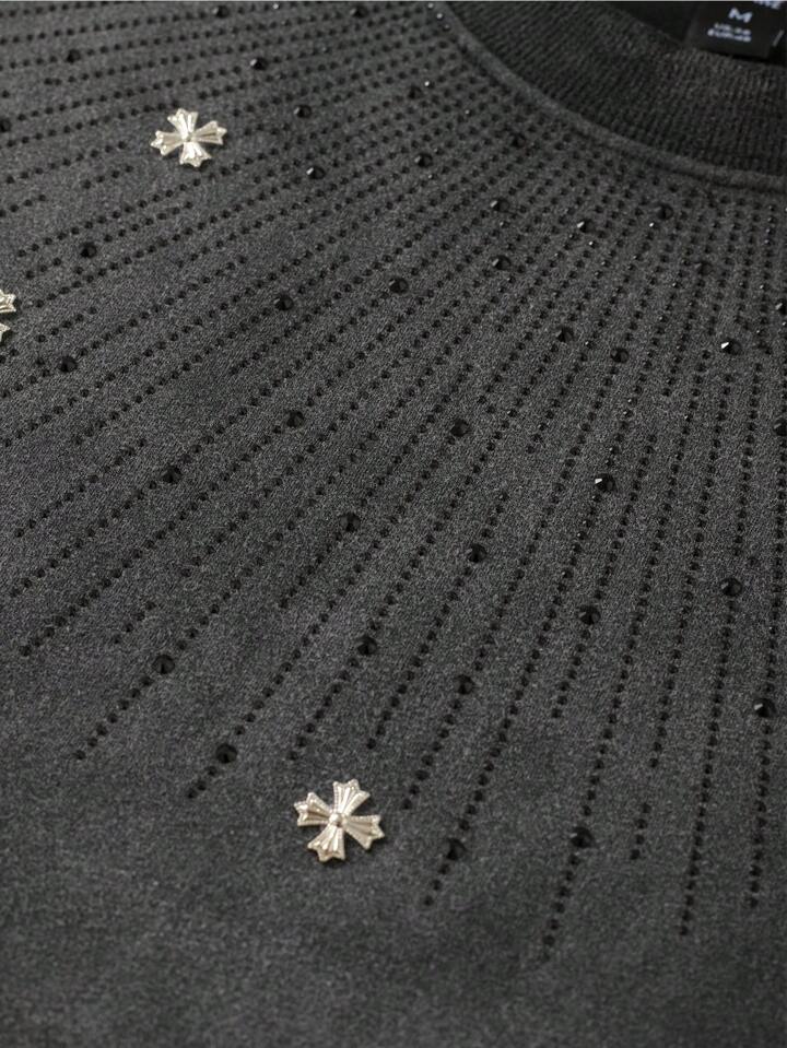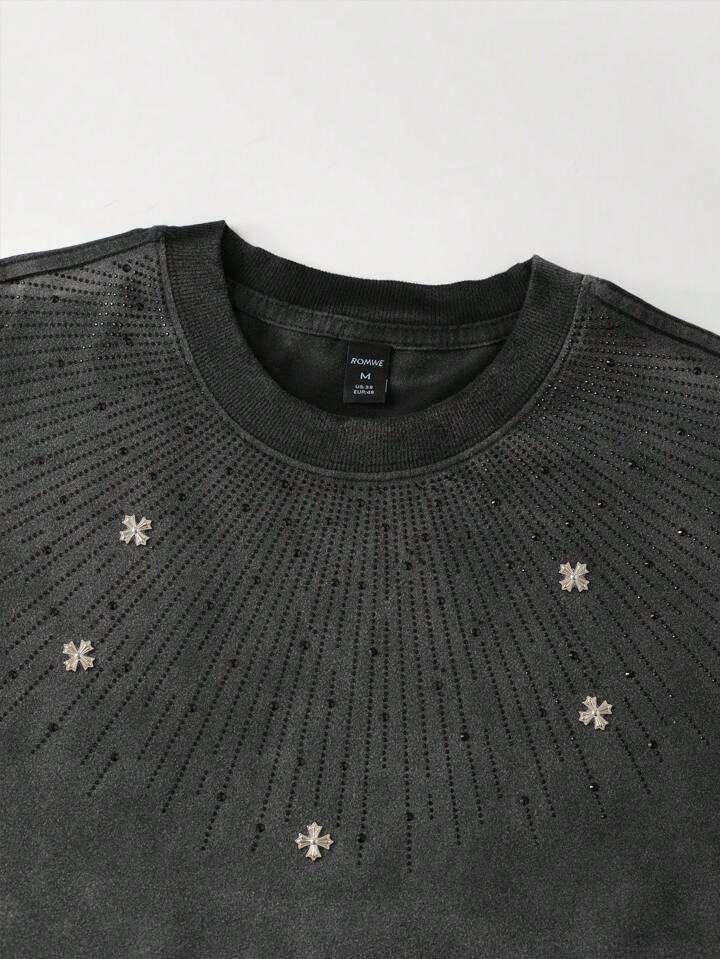 Street Life تيشيرت أسود فضفاض مبقع بالماس مريح للرجال، للصيف، للرقص والحفلات