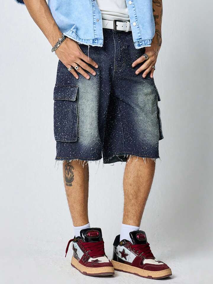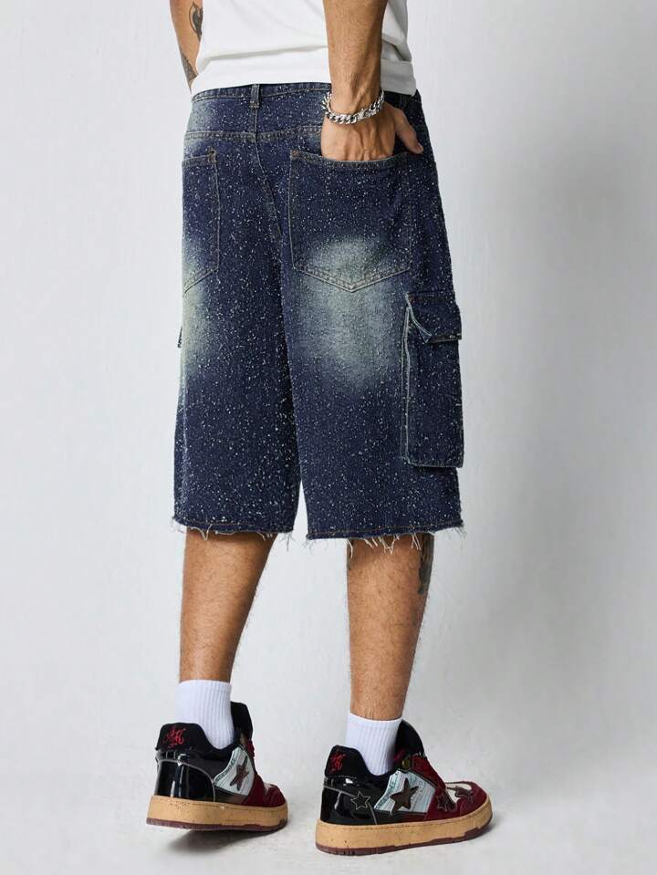Street Life سروال قصير من الجينز عريض الساق للرجال مبهت المظهر