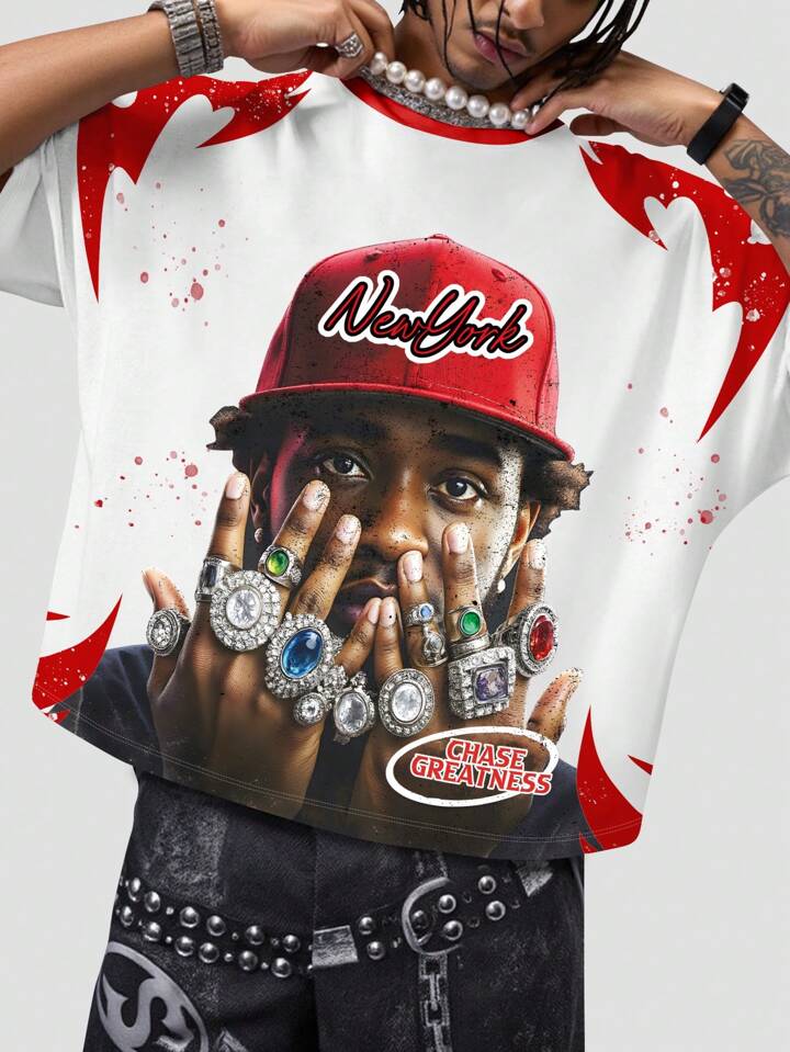 Street Life تي شيرت كاجوال ذو رقبة دائرية بأكمام قصيرة وطبعات شخصيات لعيد الحب للرجال
