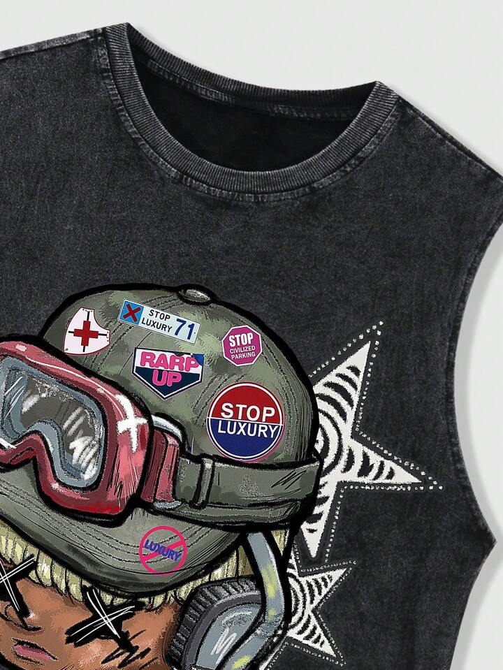 Street Life ملابس علوية أكمام رجالي مطبوع عليه صليب جوتي مغسول أو بنوع متساقط من الثلج