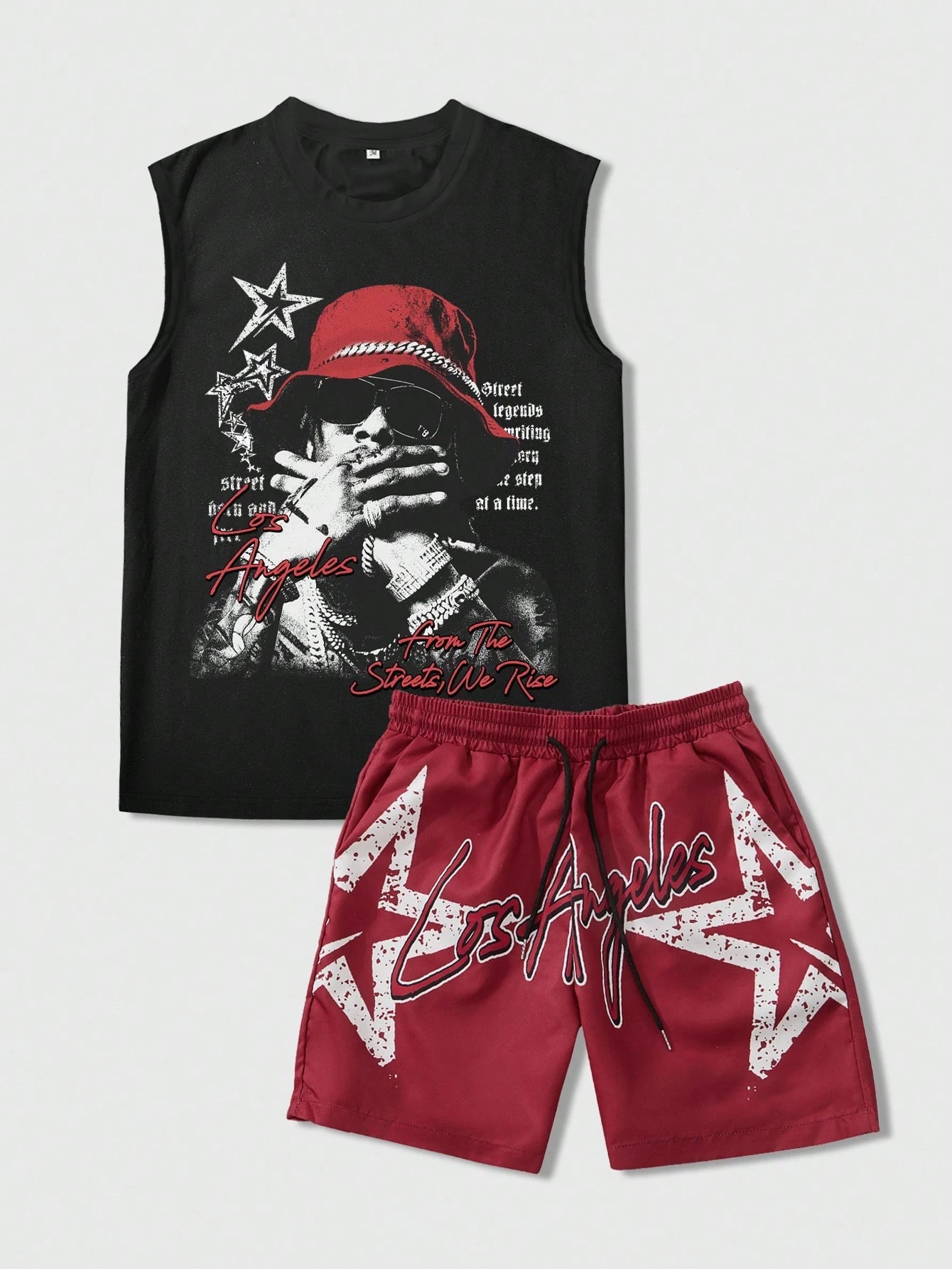 Street Life ملابس علوية أكمام وشورت رياضي مطبع بصور حديثة وزخارف هندسية، مناسب لارتداء اليومي في فصلي الربيع والصيف