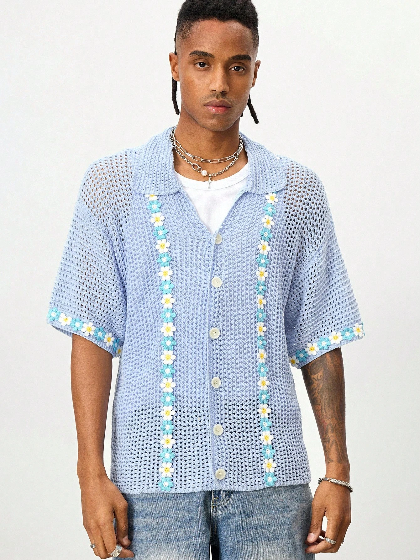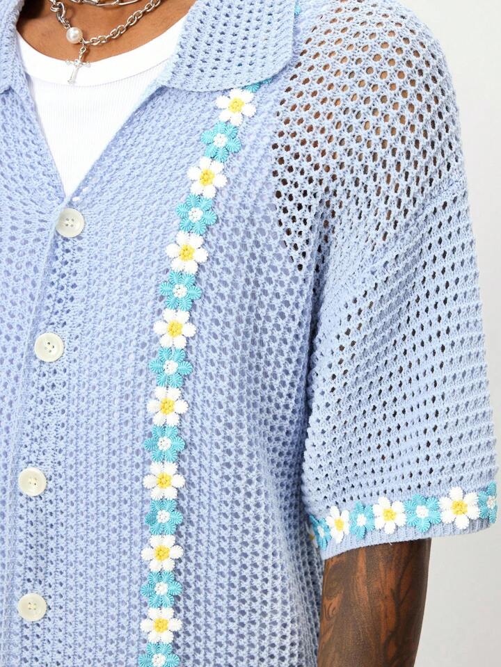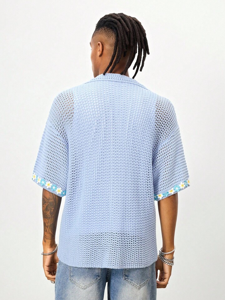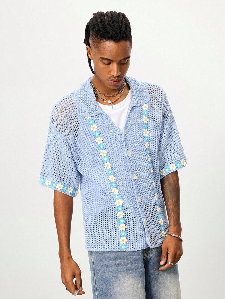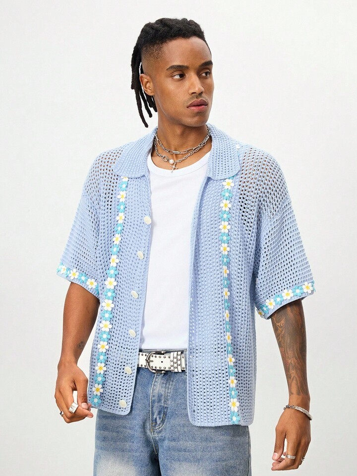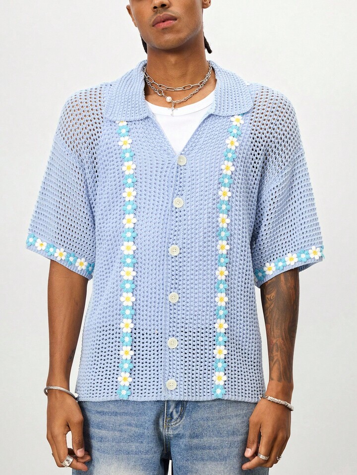 Street Life ملابس علوية رجالية كاجوال للأعياد مطرزة بتطريز مجسم، مصنوعة من قماش مجدول مفرغ