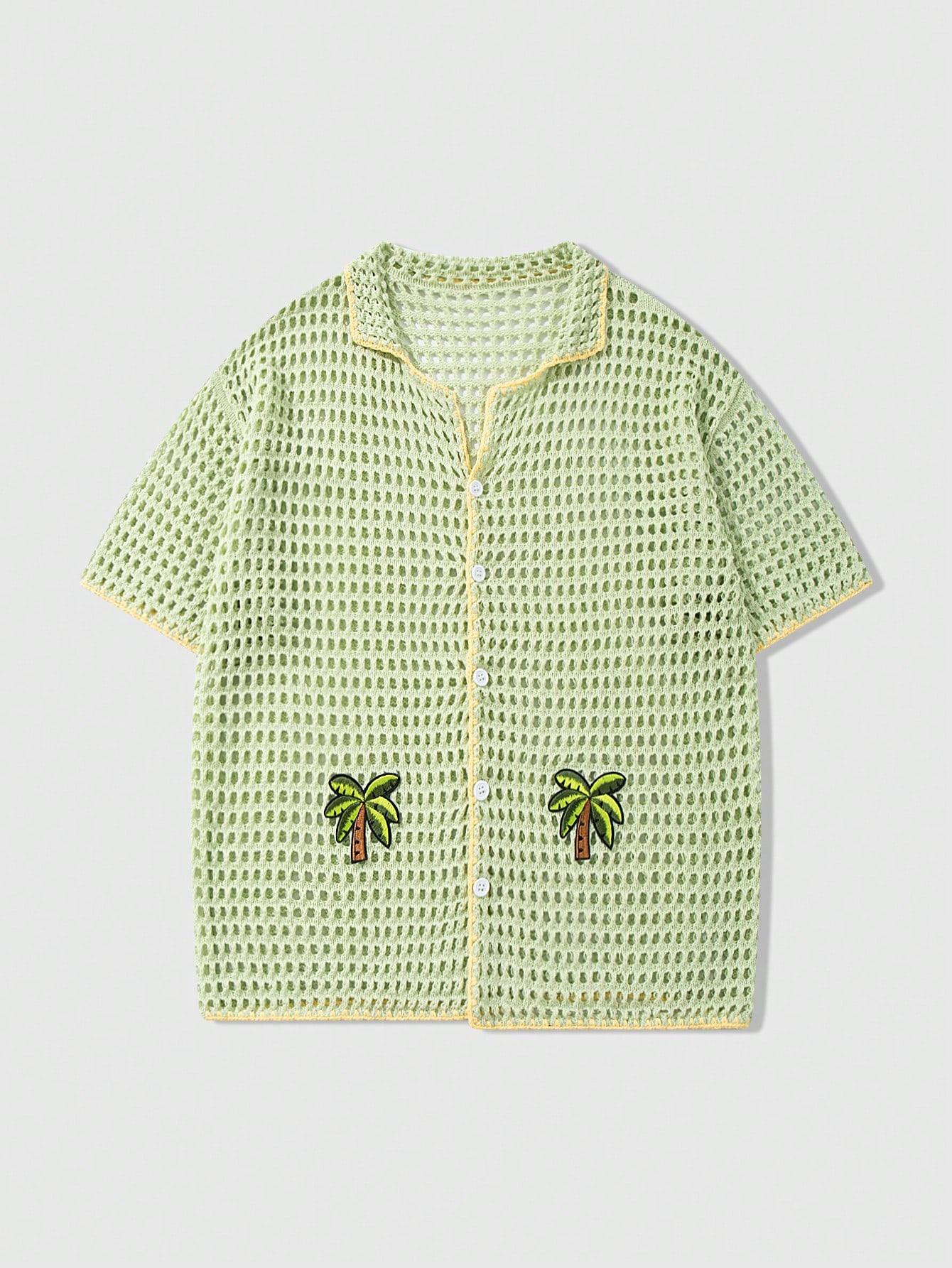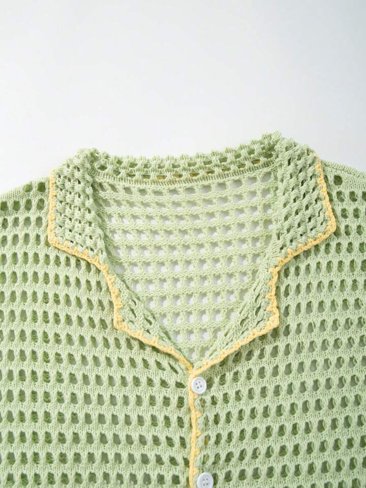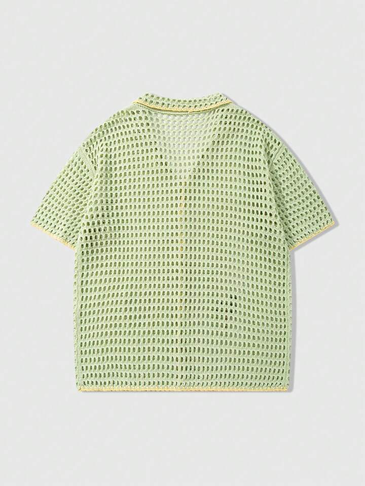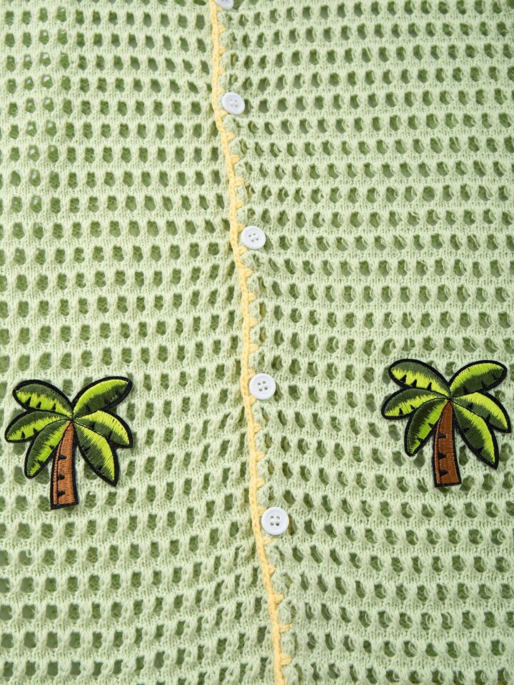 Street Life كنزة صوفية صوفية قصيرة الأكمام للرجال مطرزة بزخارف زهور نافذة مفتوحة أمامية مع أزرار