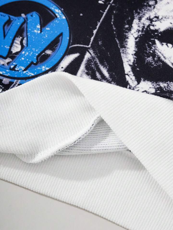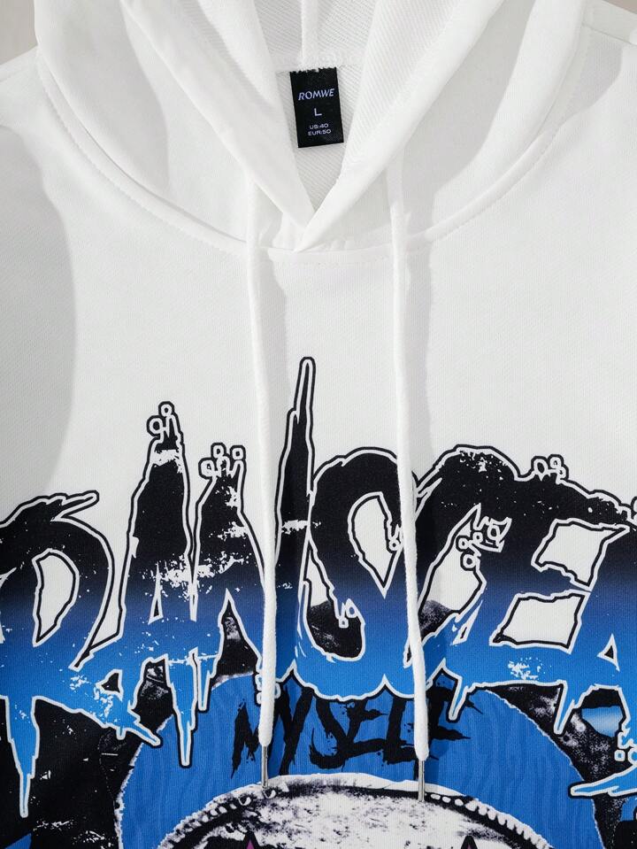 Street Life بلوزة رجالية برأس كابوشون مطبوع عليها حرف وصورة
