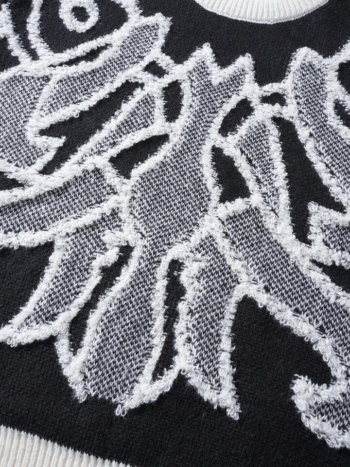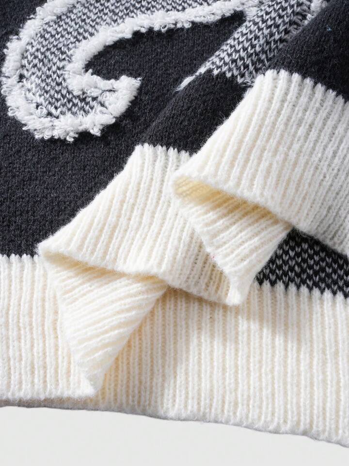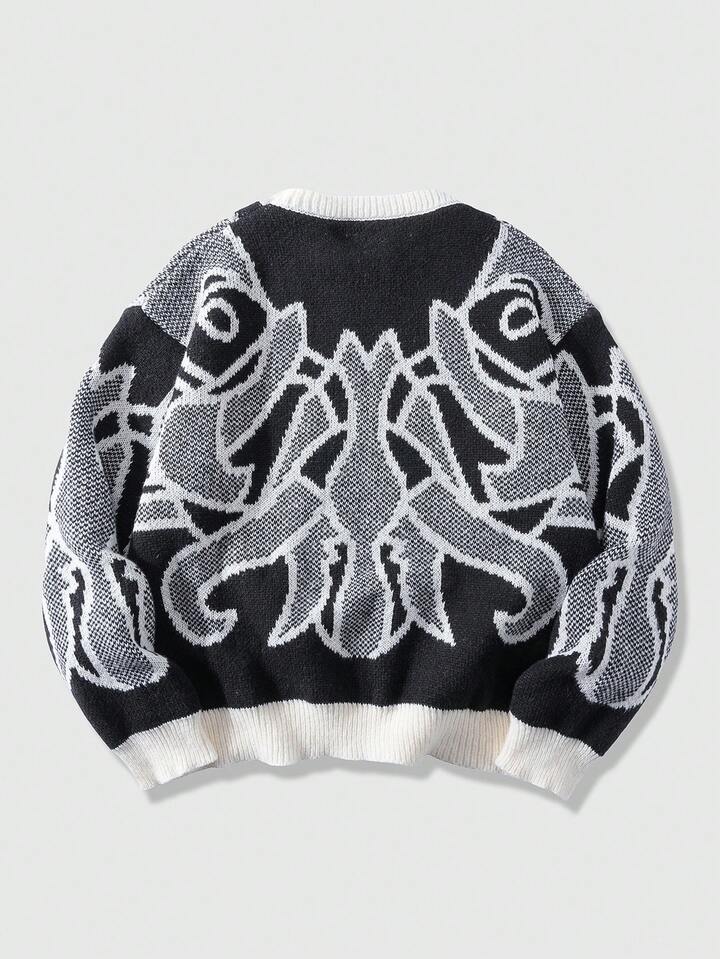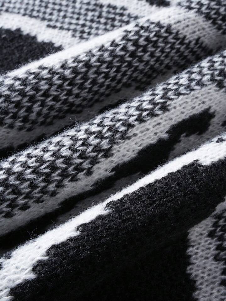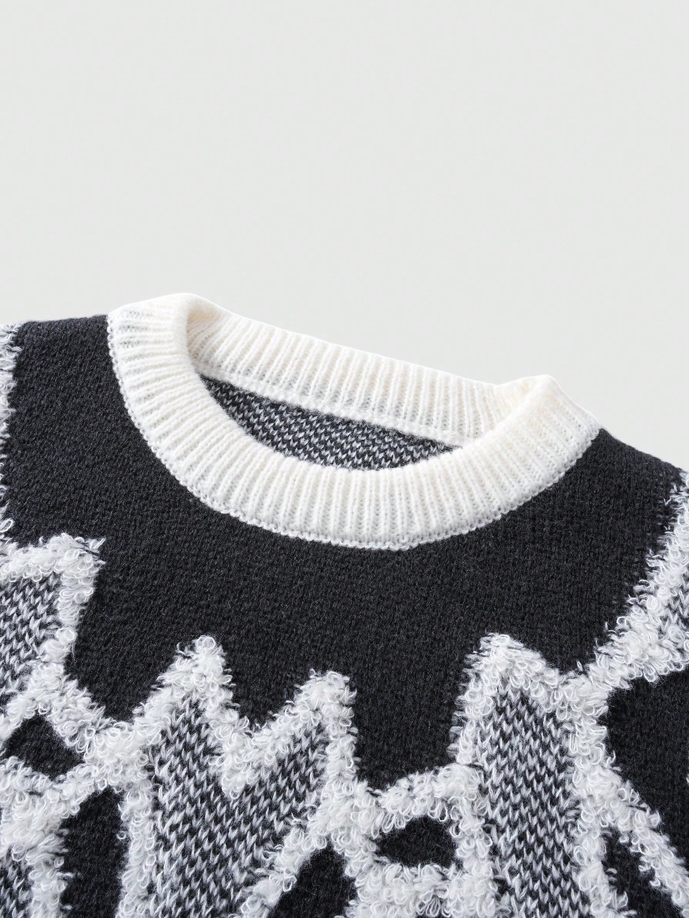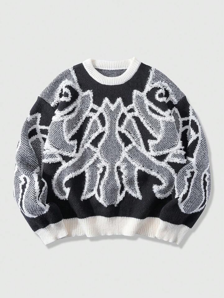 Street Life كنزة صوفية كاجوال بياقة طاقم مصنوعة من نسيج جاكار مضفر بأكمام طويلة وفضفاضة