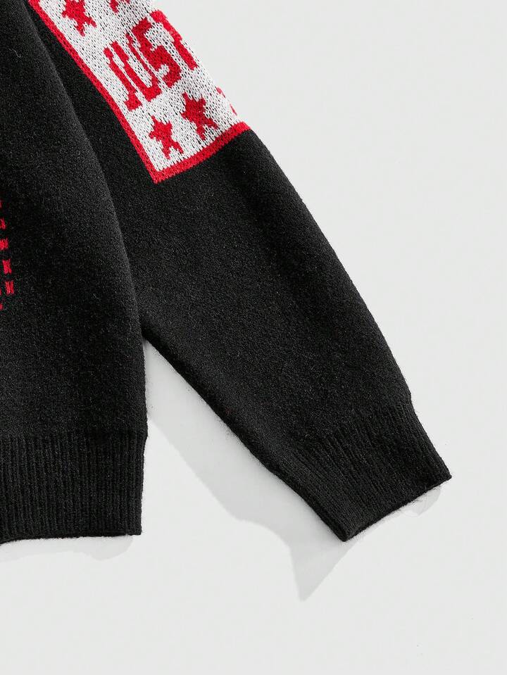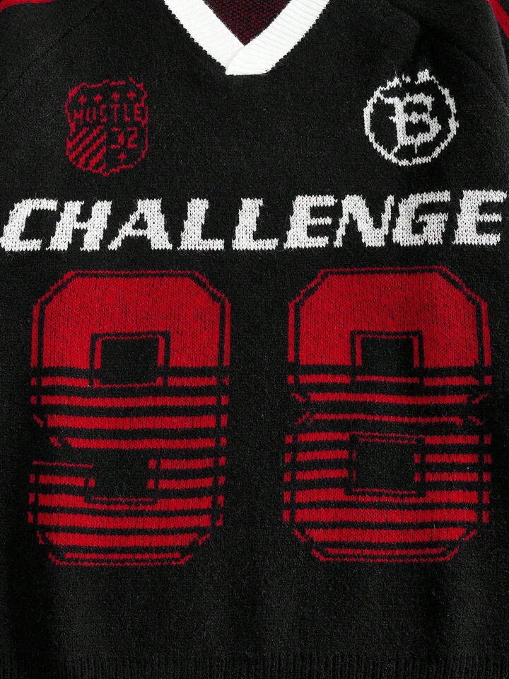 Street Life بلوزة تريكو رجالية بياقة على شكل حرف V وطباعة كتابية، كاجوال متنوع الاستخدامات بأكمام طويلة