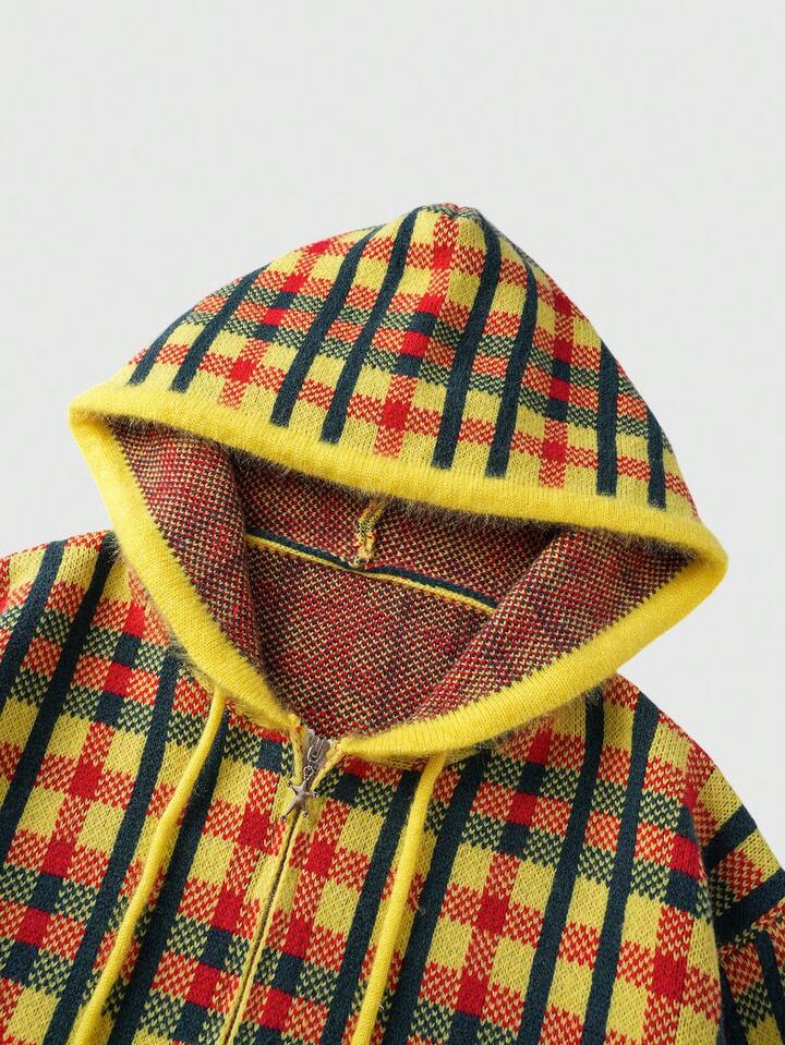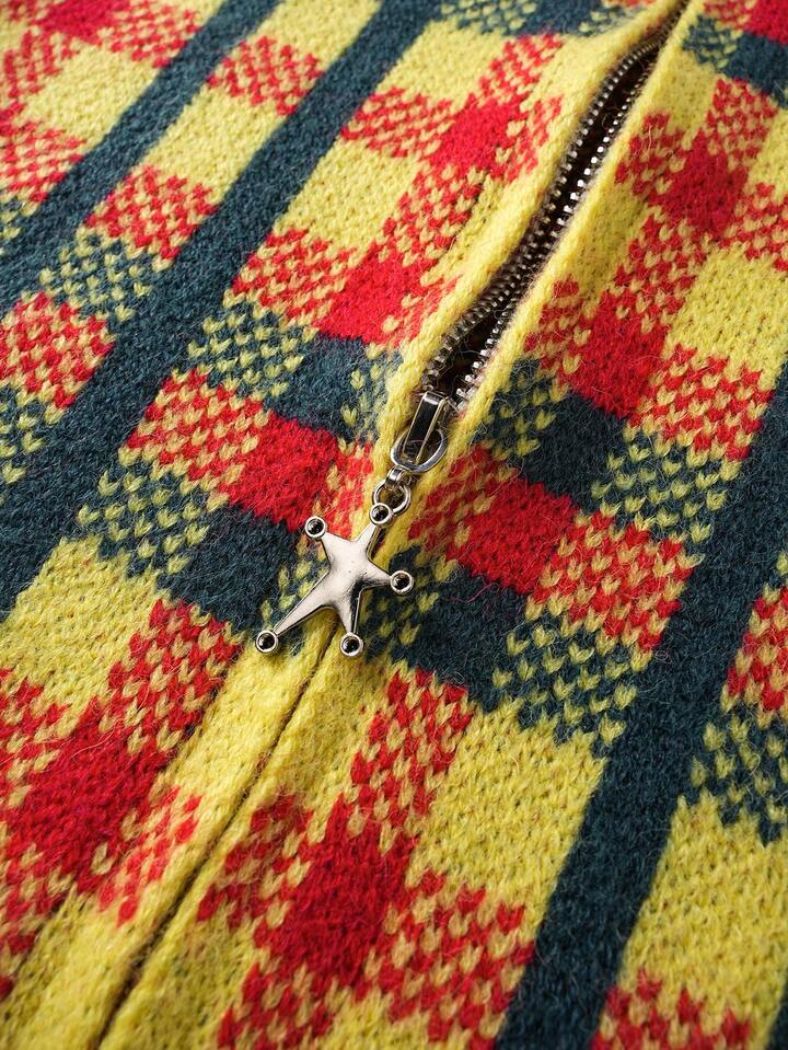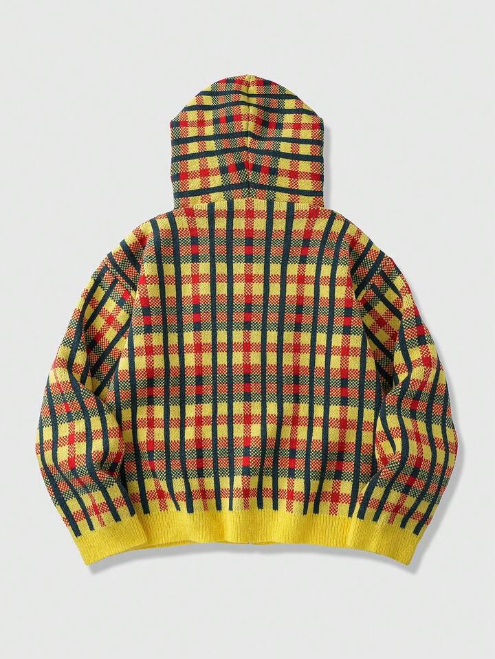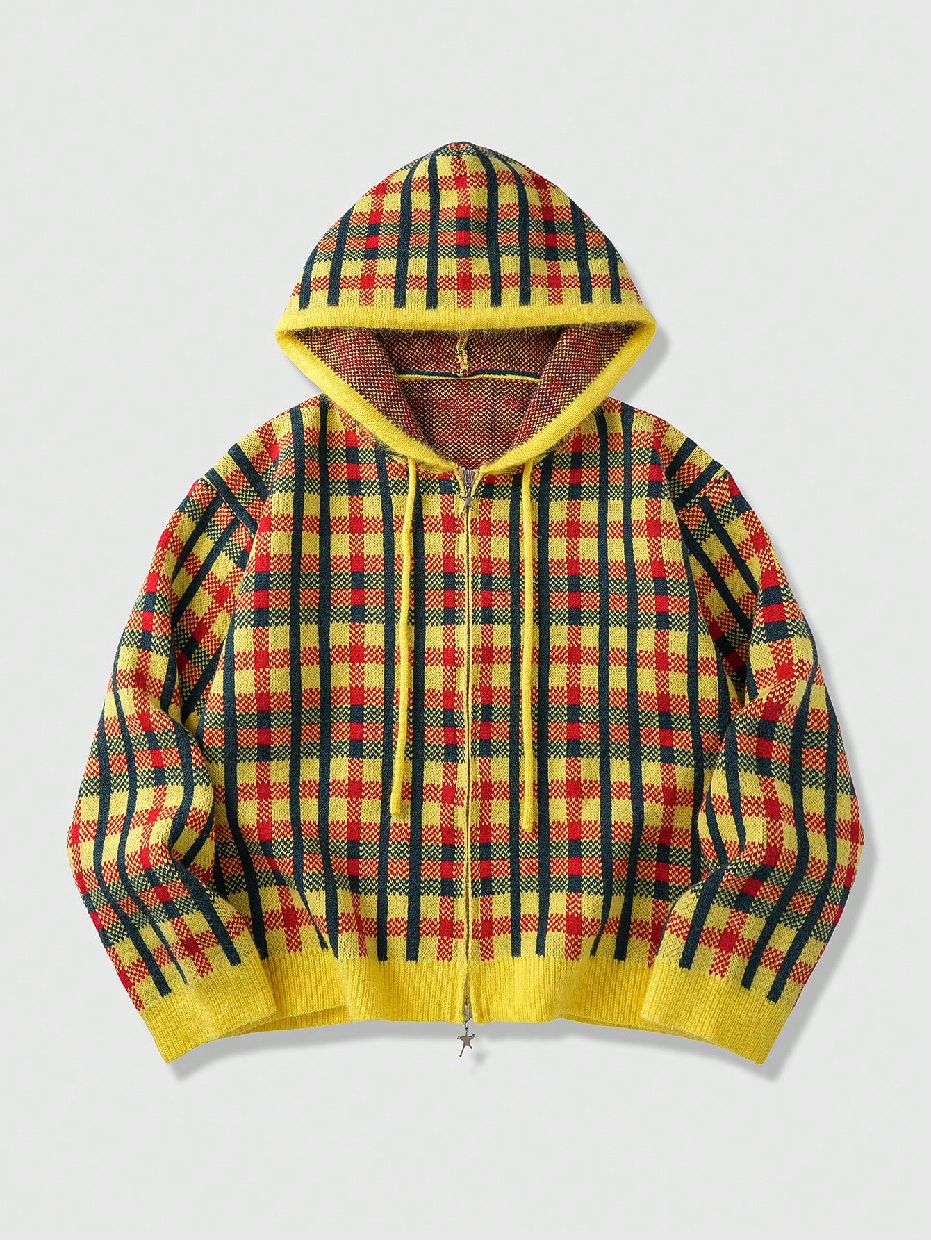 Street Life كارديجان رجالي كاجوال بسحاب وكابوشون بطبعة مربعات، أكمام طويلة