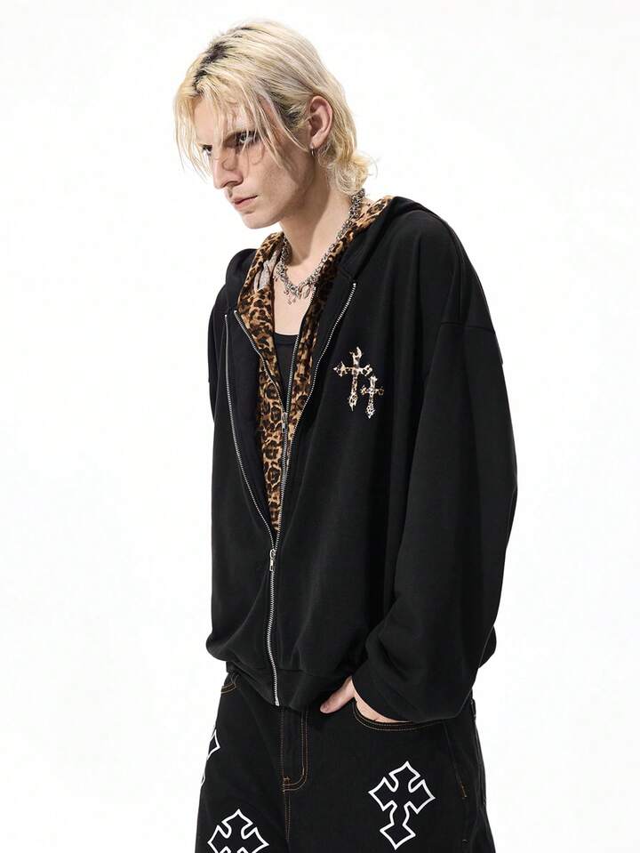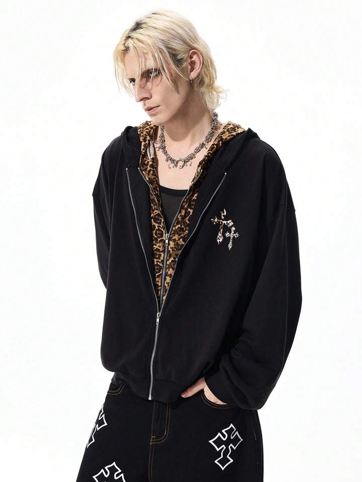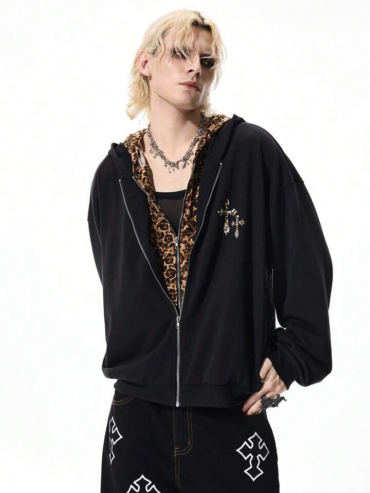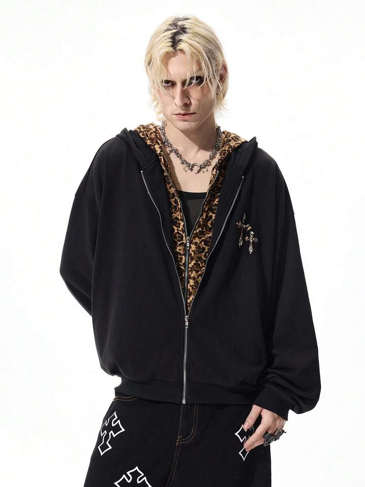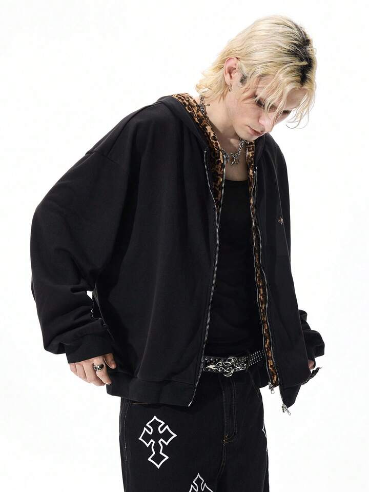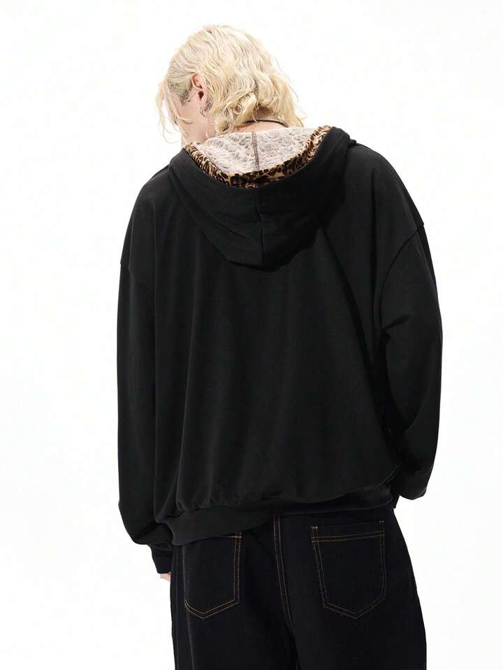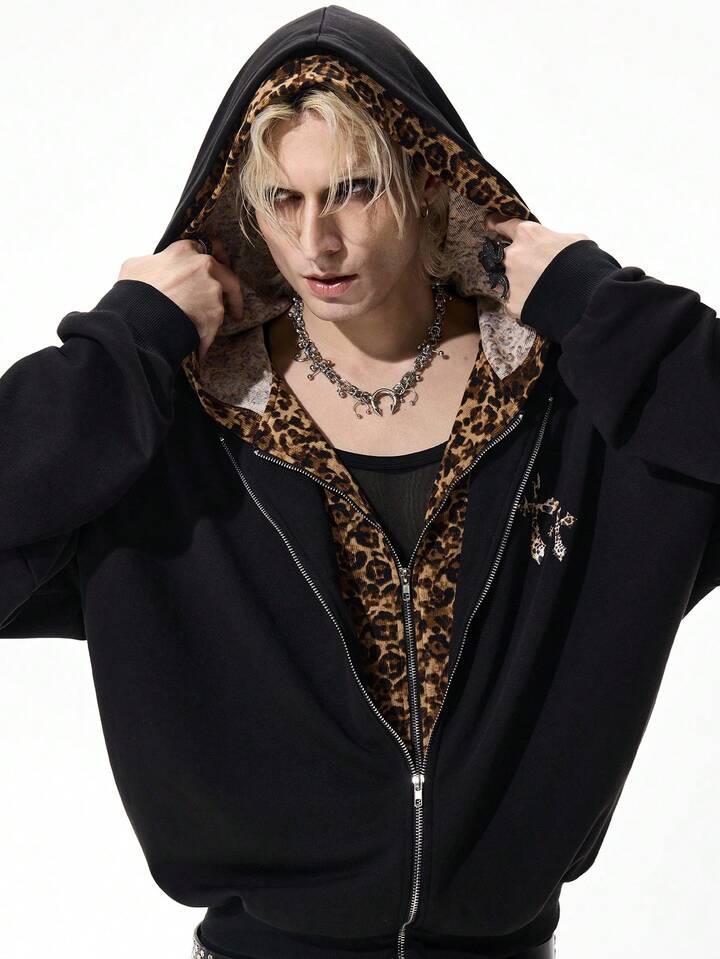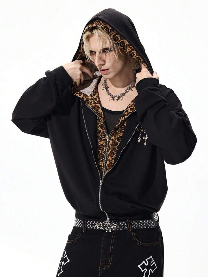 Street Life بلوزة رجالية بقلنسوة مزدوجة بطبعة نمر