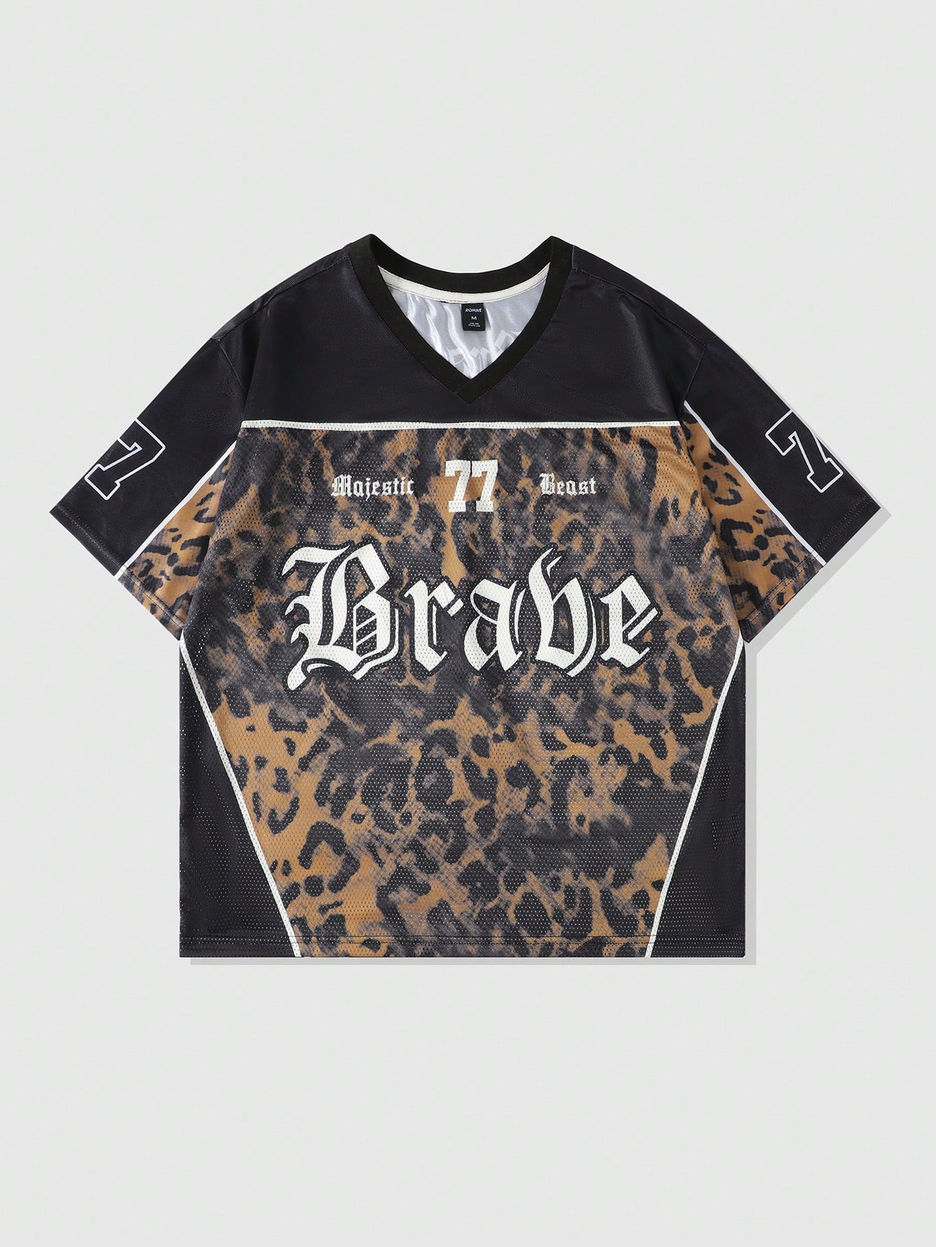 Street Life تي شيرت كرة السلة رسمي الأكمام قصير مطبوع برسمة نمر، تي شيرت رياضي بألواح من قماش الشبكة، للصيف