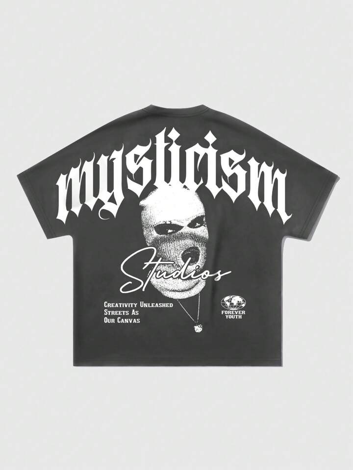 Street Life تي شيرت كاجوال بنصف كم ياقة دائرية للرجال مطبوع عليه أحرف وشخصيات