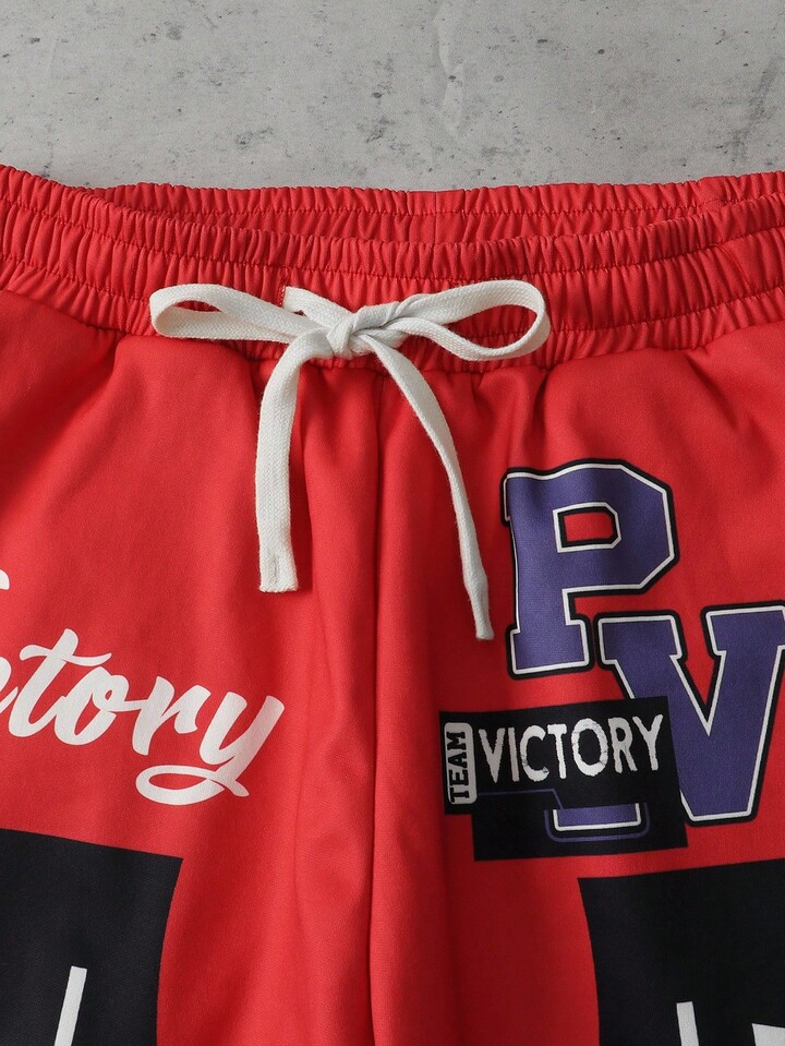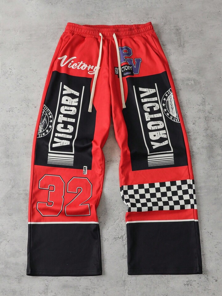Street Life بنطلون رجالي بخصر مربوط بسحاب مطبوع بطباعة الحرف والمربعات