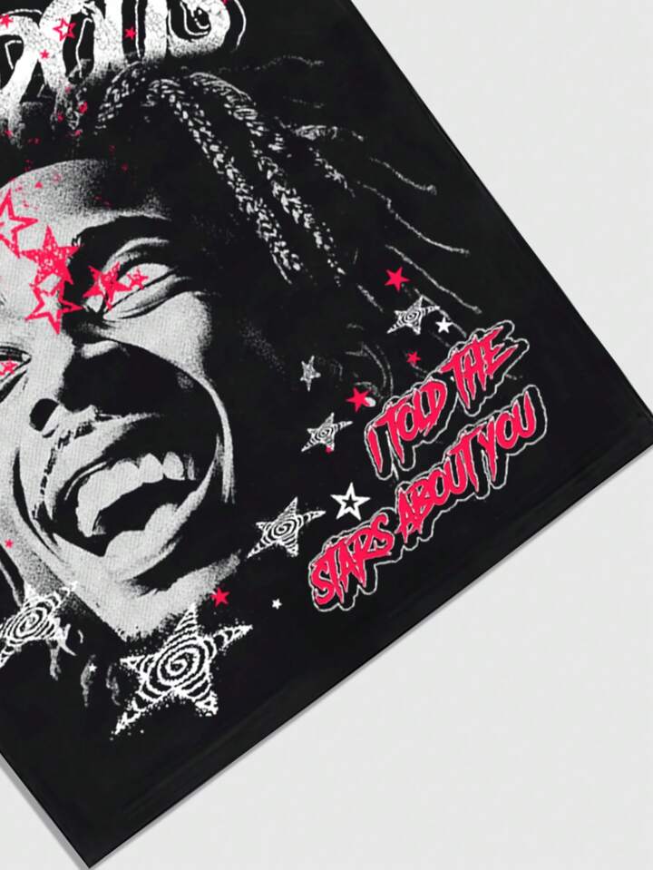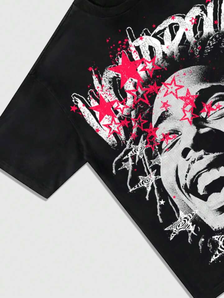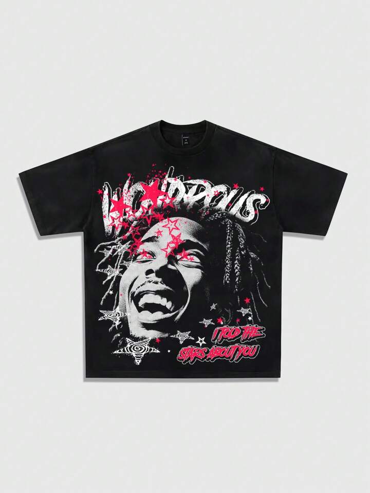 Street Life تي شيرت كاجوال بأكمام قصيرة مطبوع عليه رسائل وأشكال آدمية ذو ياقة دائرية للرجال