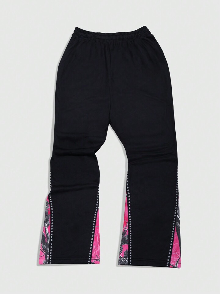 Street Life بنطال رياضي بخصر رباط مطبوع عليه حروف، ساق مستقيمة للرجال