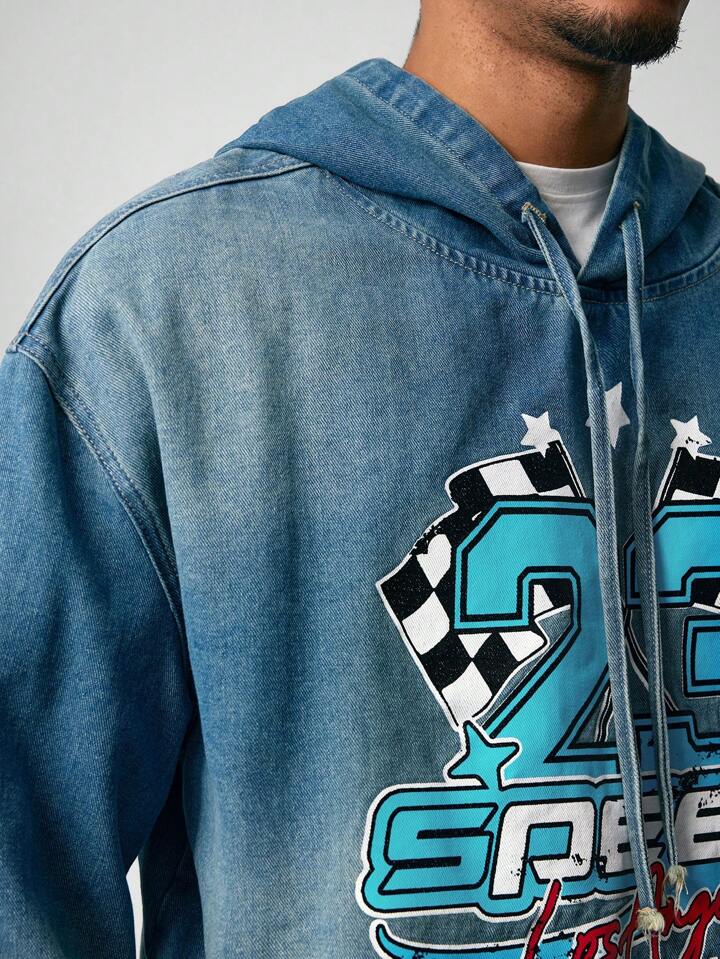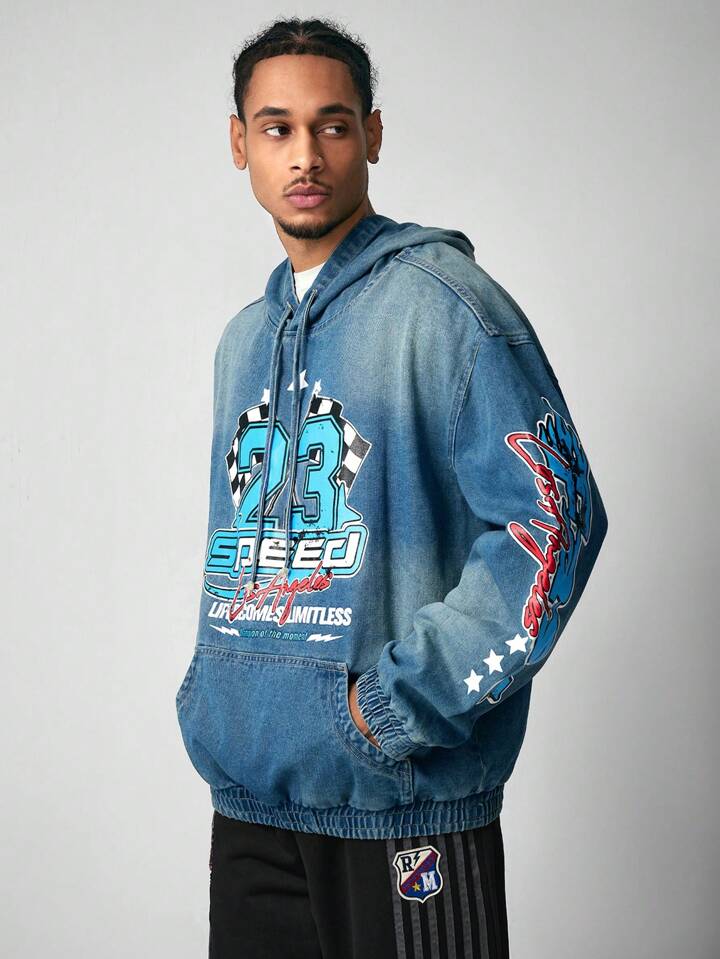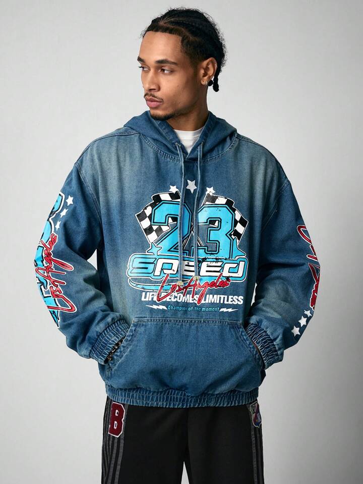 Street Life ملابس علوية كاجوال طويل الأكمام بطبعة حرف، أسمنتي اللون وذو كابور هود بخيط شد
