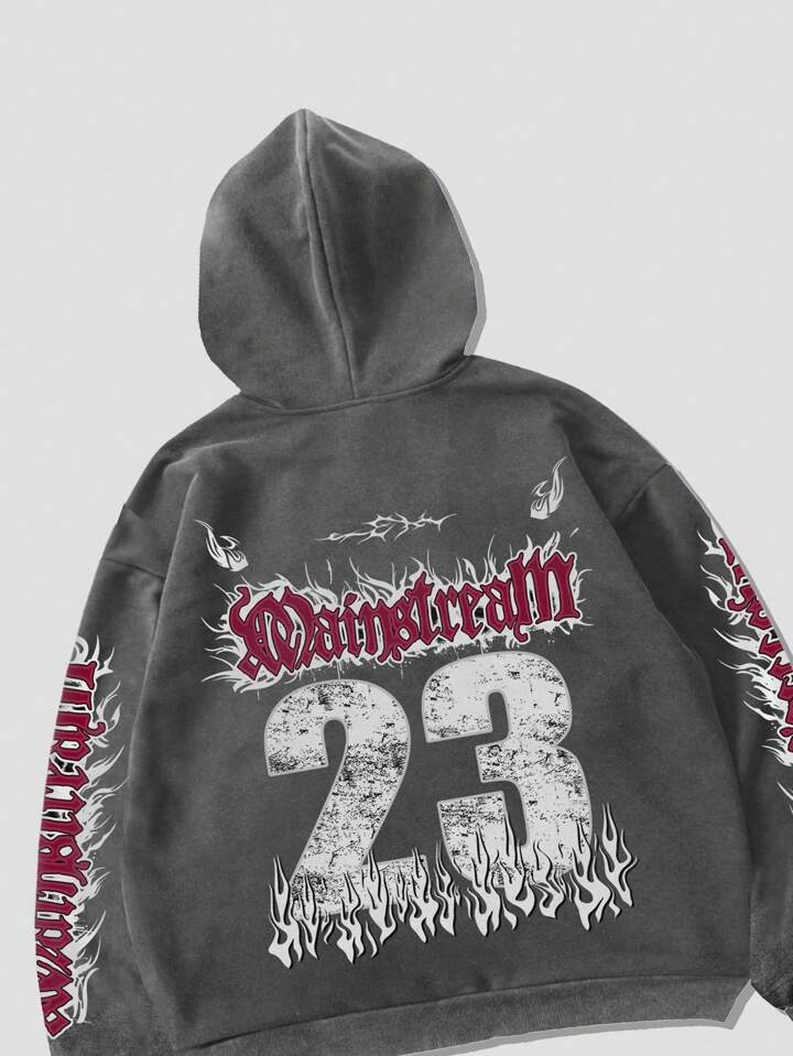 Street Life بلوزة رجالي ذات كم طويل مطبوع عليها حرف، غسل عتيق مفتوح من الأمام بطراز شارع رجعي