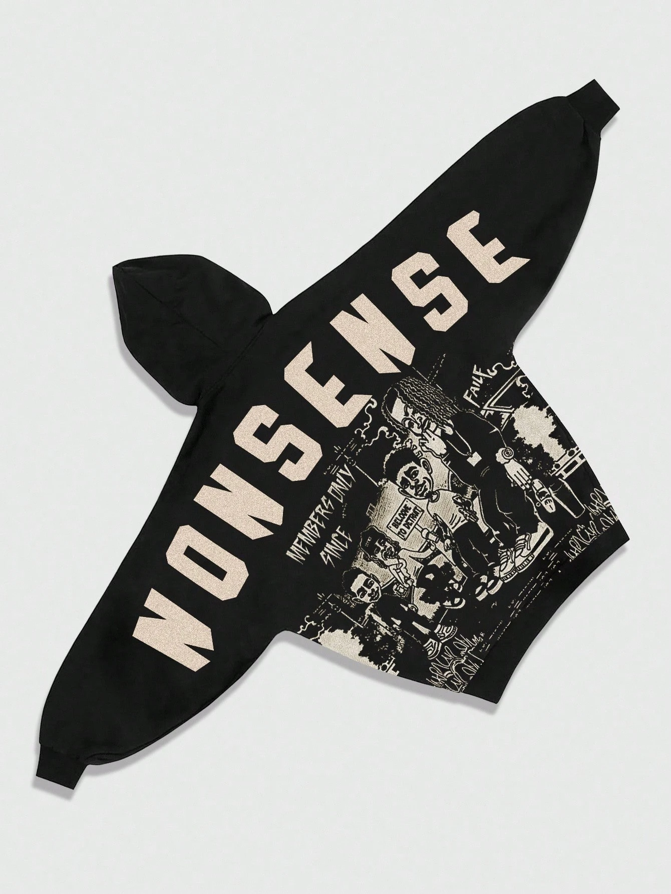 Street Life بلوزة رياضية كاجوال بغطاء رأس وسحاب، طباعة حرفية، أكمام طويلة، موسم الخريف للرجال