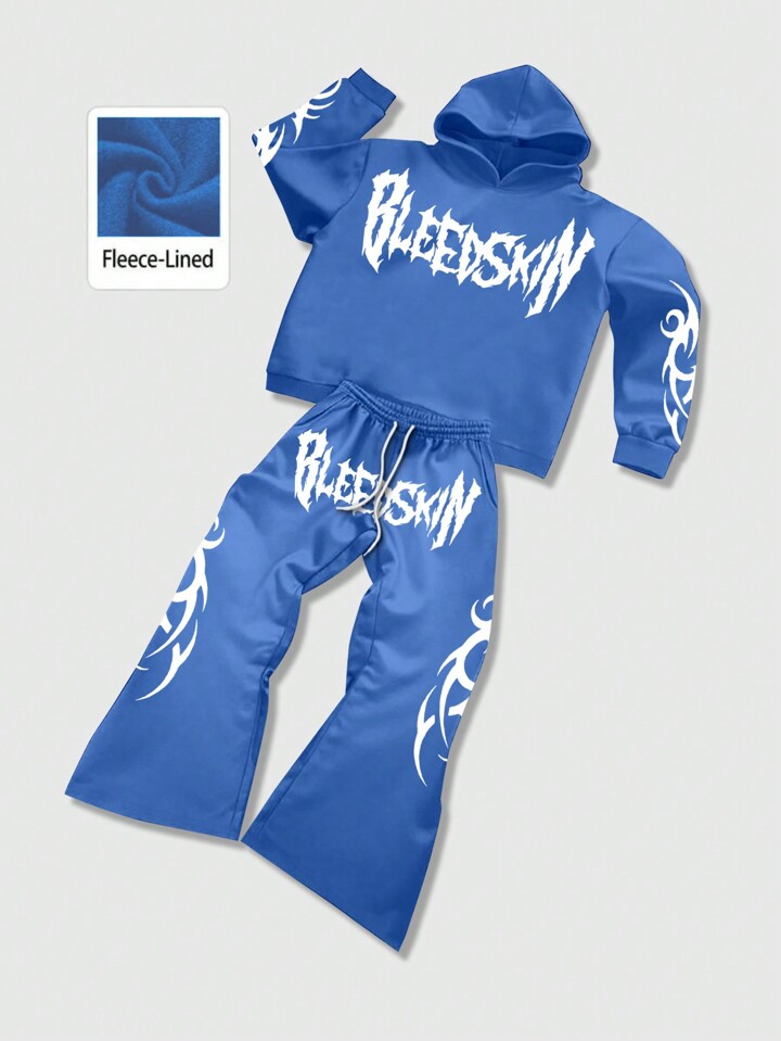 Street Life بدلة رياضية رجالية كاجوال من قميص طويل الأكمام مطبوع عليه حرف وبنطال بنمط هودي، مناسبة للخريف/الشتاء