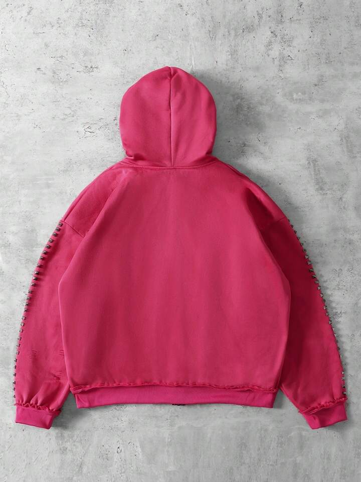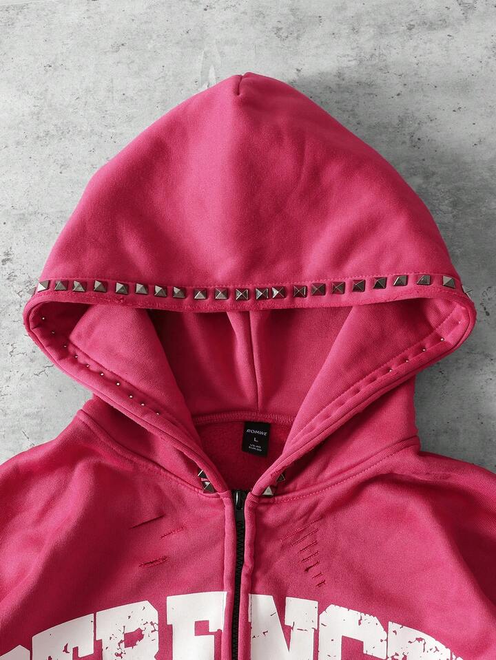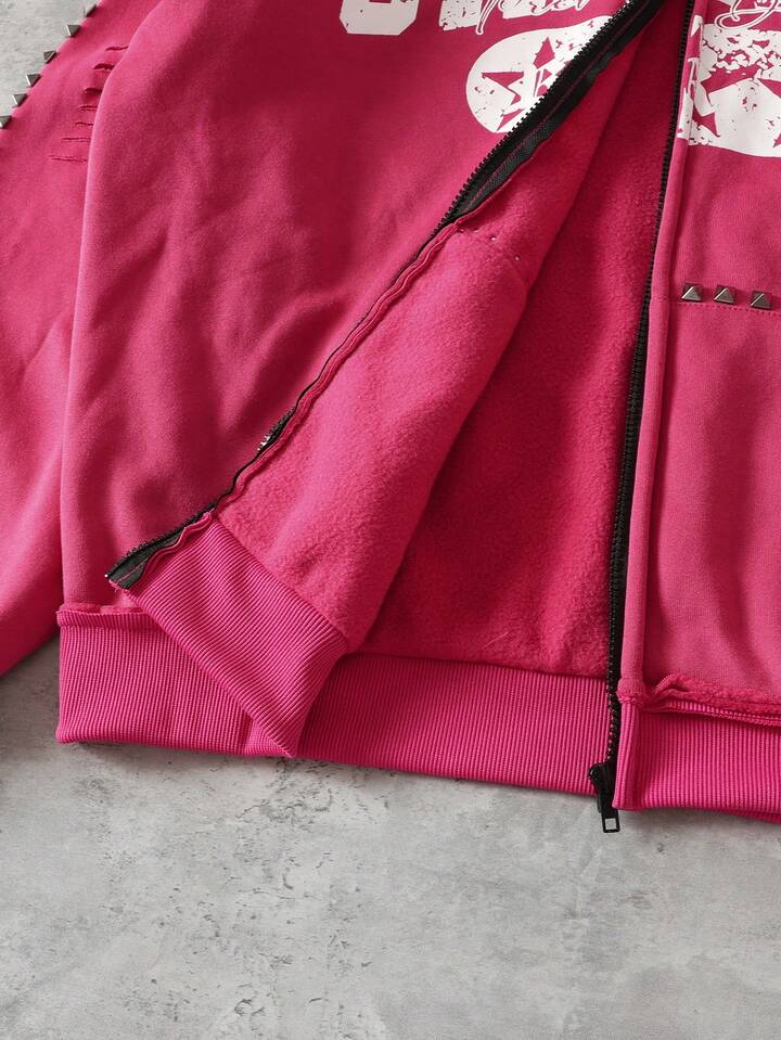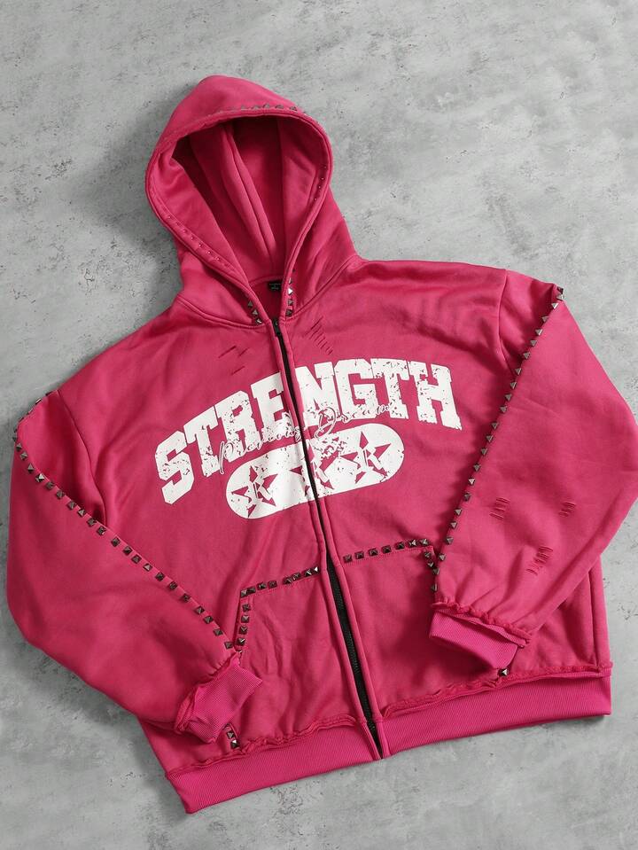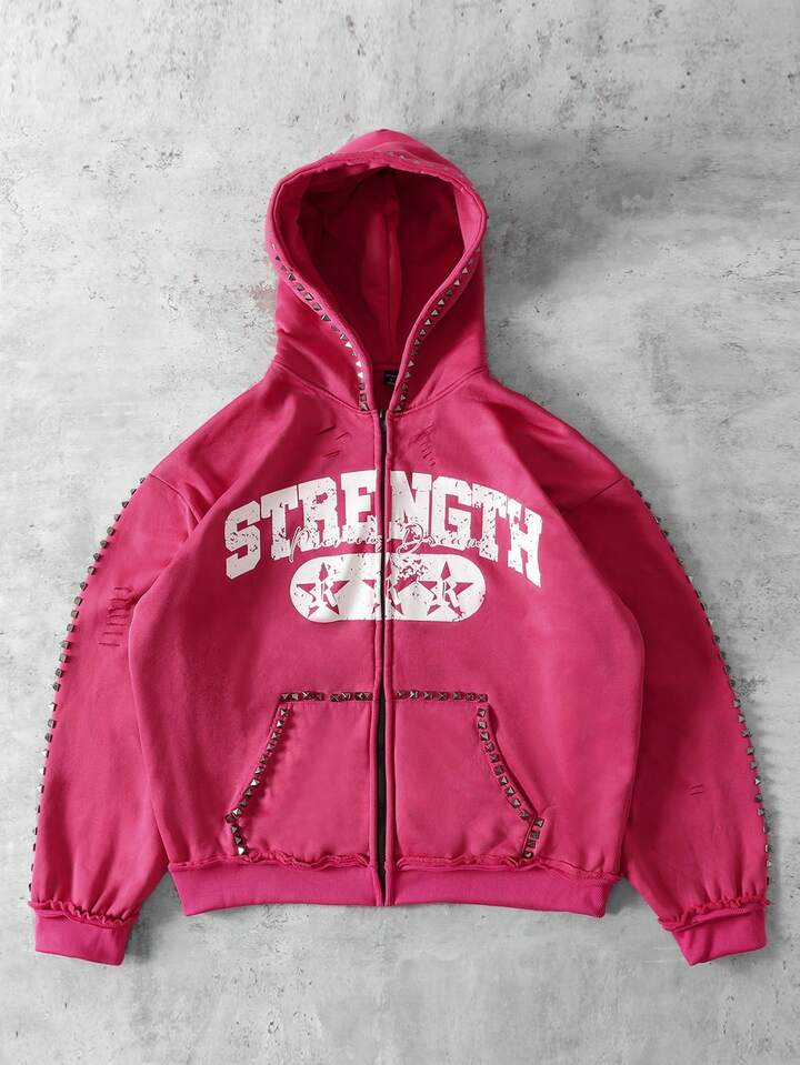 Street Life بلوزة رياضية مطبوع عليها حرف مع سحاب معدني وأزرار، قياس فضفاض