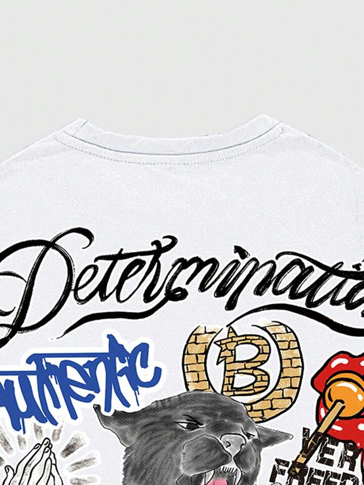 Street Life تي شيرت كاجوال ذو رقبة دائرية وأكمام قصيرة مطبوع عليه حروف للرجال
