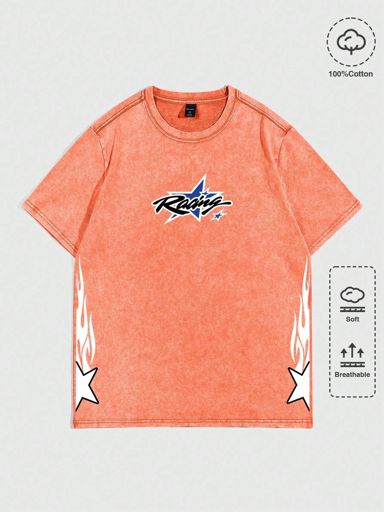Street Life تي شيرت رجالي قصير الأكمام طباعة حرف، رقبة دائرية، بتأثير بهت ومغسول بالثلج، طراز فينتاج صيفي