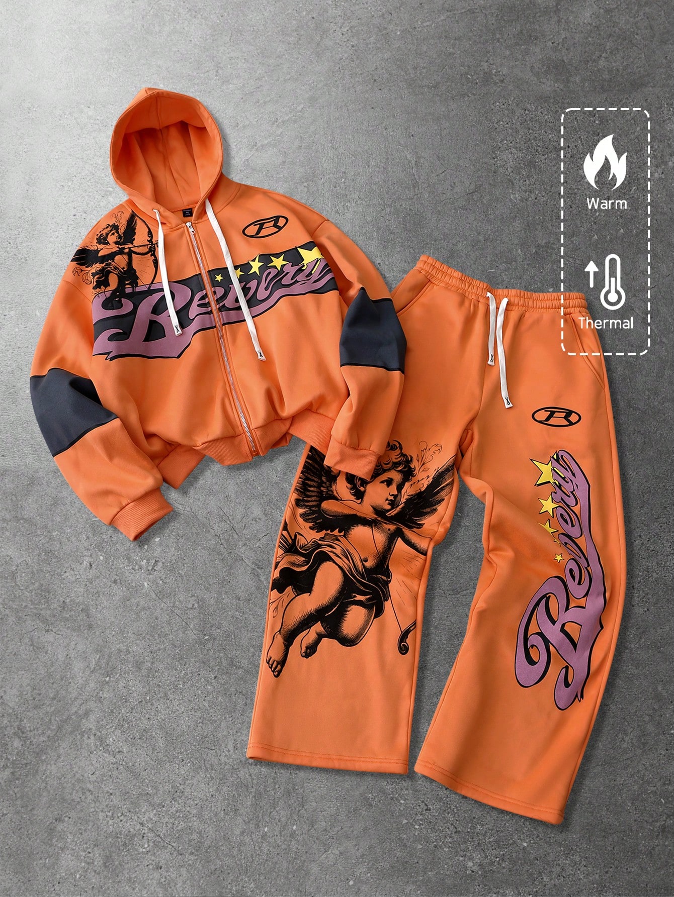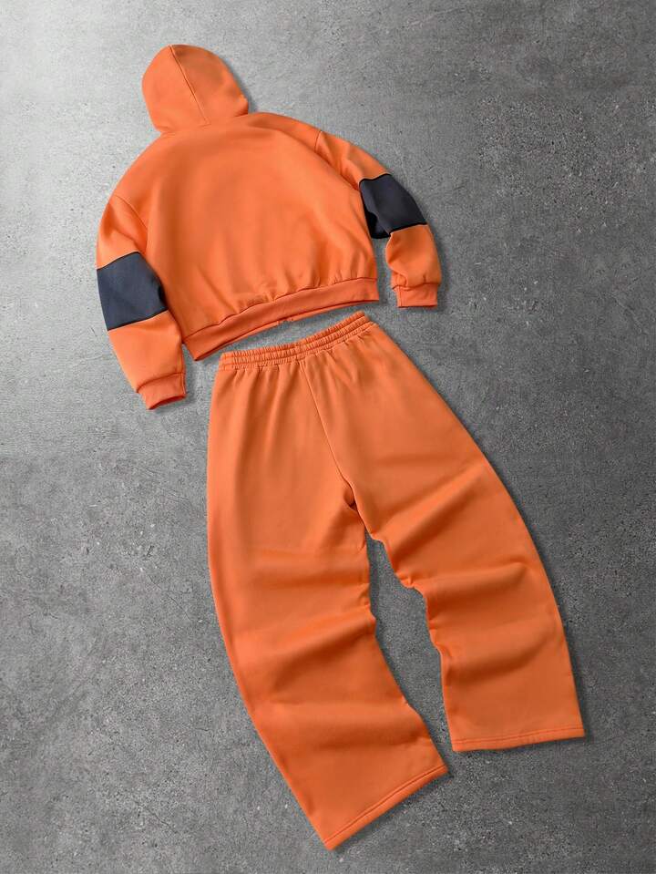 Street Life بدلة رجالية تتكون من هودي مطبوع عليه حرف مع سحاب وبنطلون بخصر مرن، للخريف/الشتاء