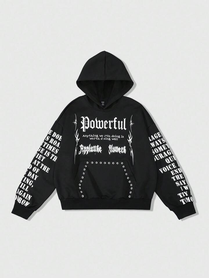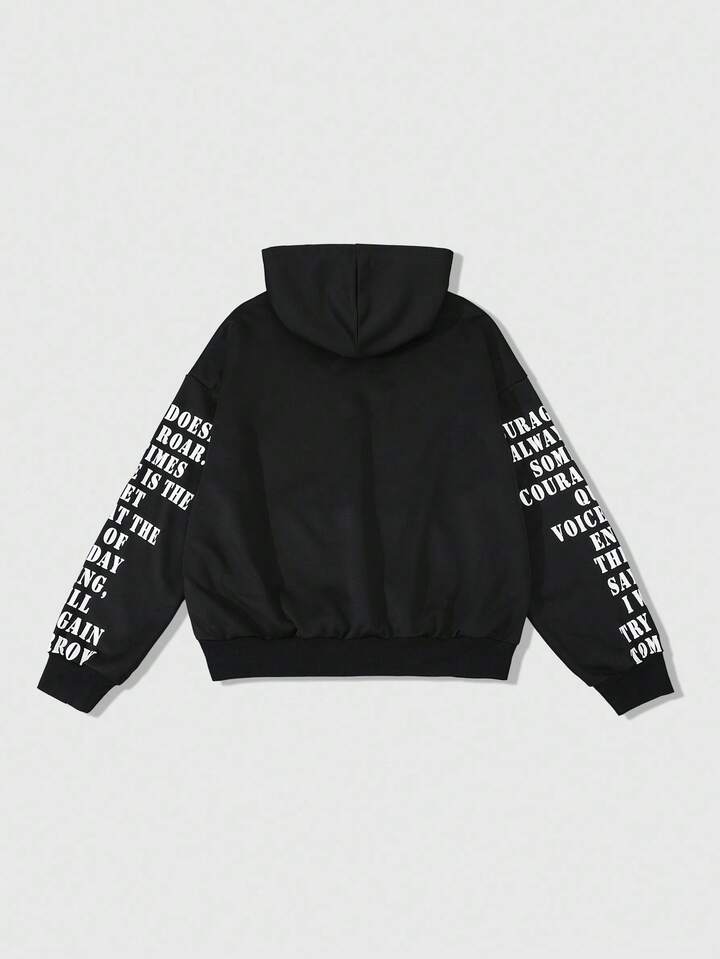 Street Life هودي مطبوع عليه حرف للرجال، بتصميم فضفاض قصير، خريف