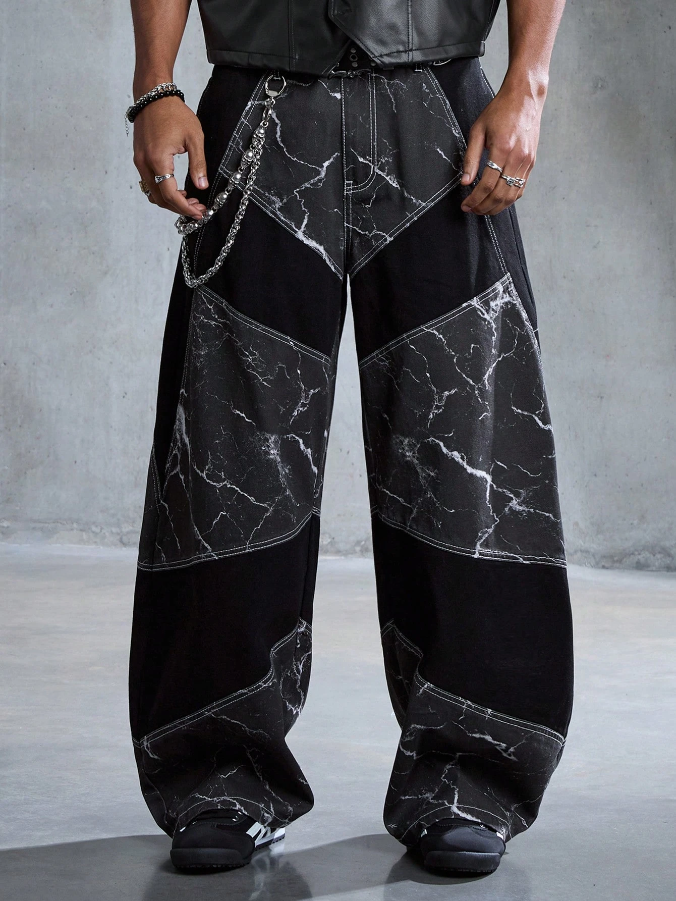 Street Life بنطلون جينز رجالي مستقيم الساق بطبعة البرق والرقعات