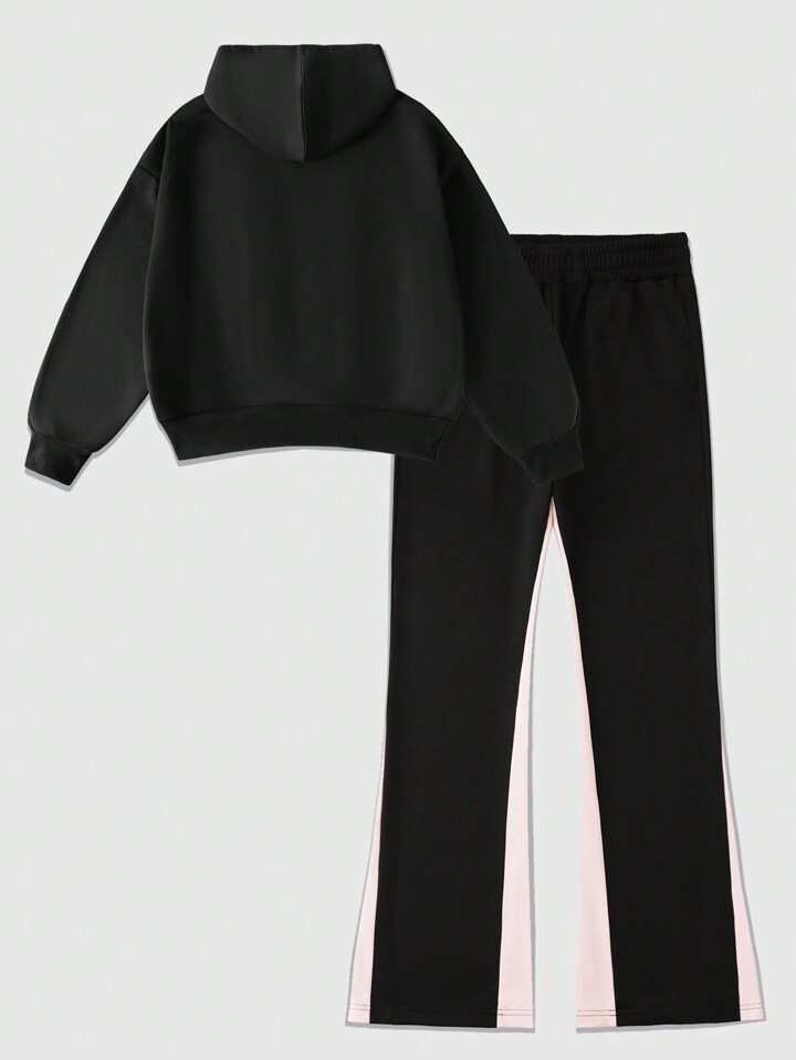 Street Life بدلة رياضية رجالية فضفاضة بقطع قصيرة، بطبعات حروف وأرقام على هوديي طويل الأكمام وبنطال رياضي، بطراز شارع كلاسيكي