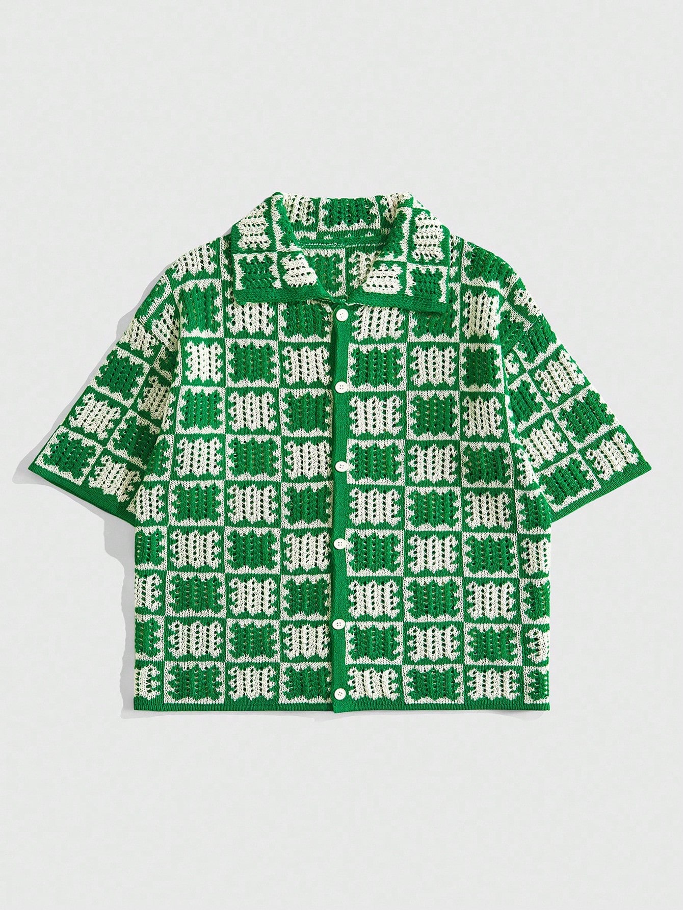 Street Life قميص رجالي فضفاض بأكتاف منخفضة مفرغ من الكروشيه، قميص للعطلات