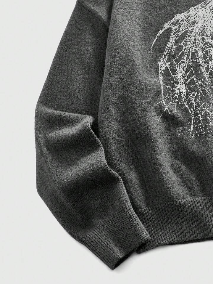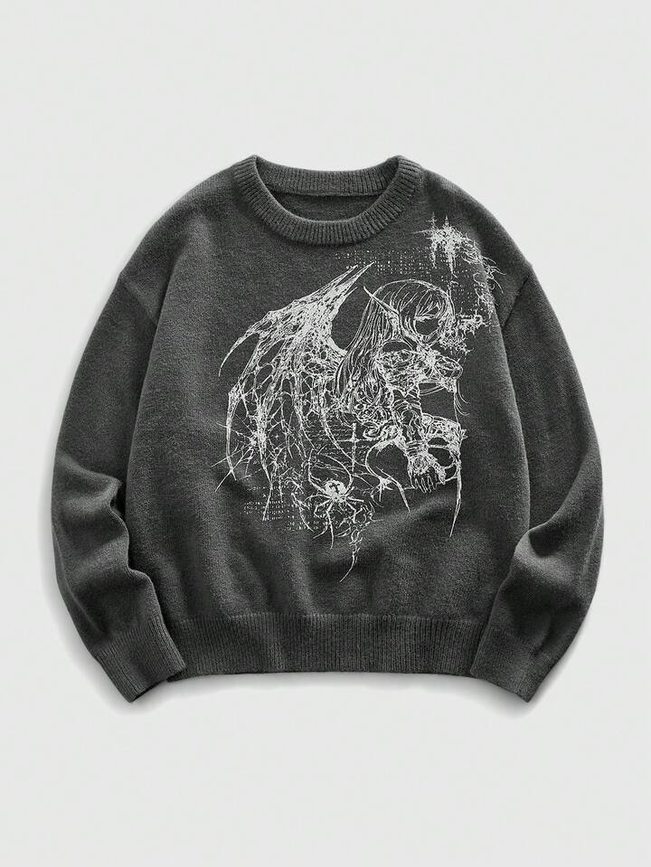 Street Life كنزة صوفية كاجوال فضفاضة بطبعة شخصية أنمي داكنة، ذات فتحة كتف منسدلة، للرجال، خريف/شتاء
