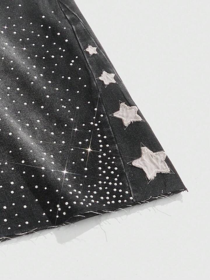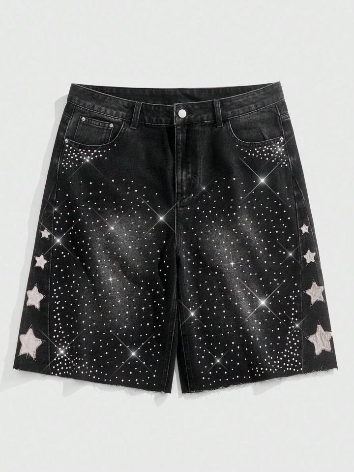 Street Life شورت جينز أريحي بتطريز ماسي على شكل نجمة خماسية للرجال