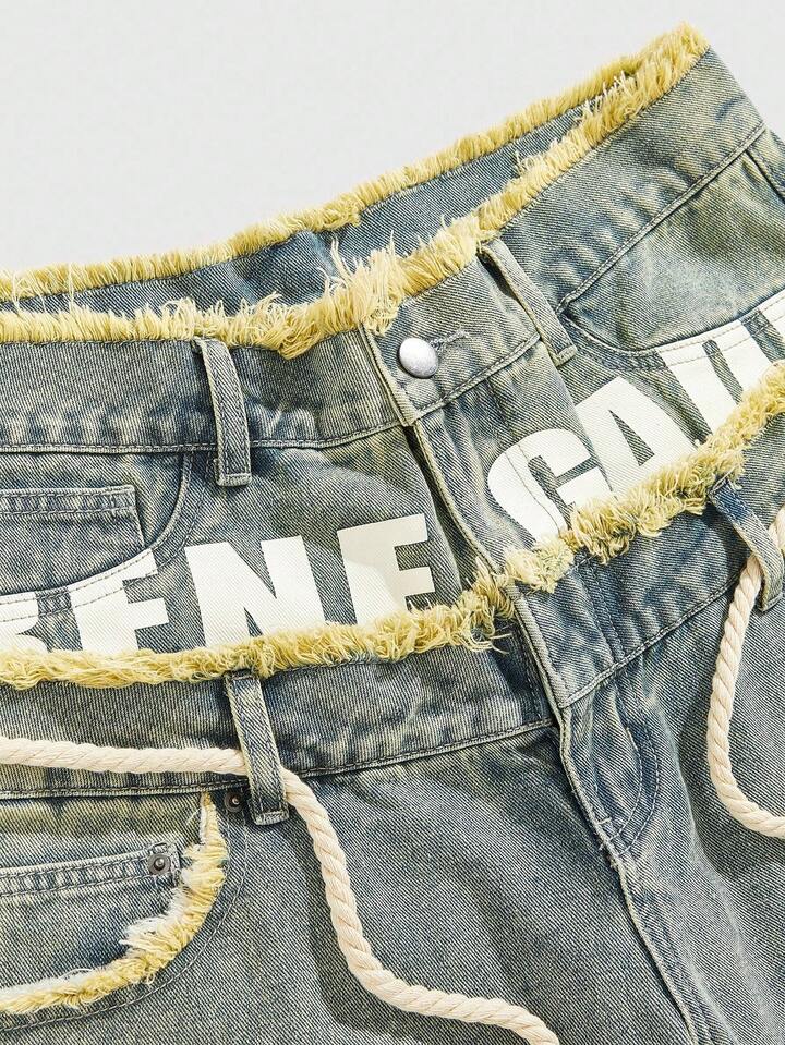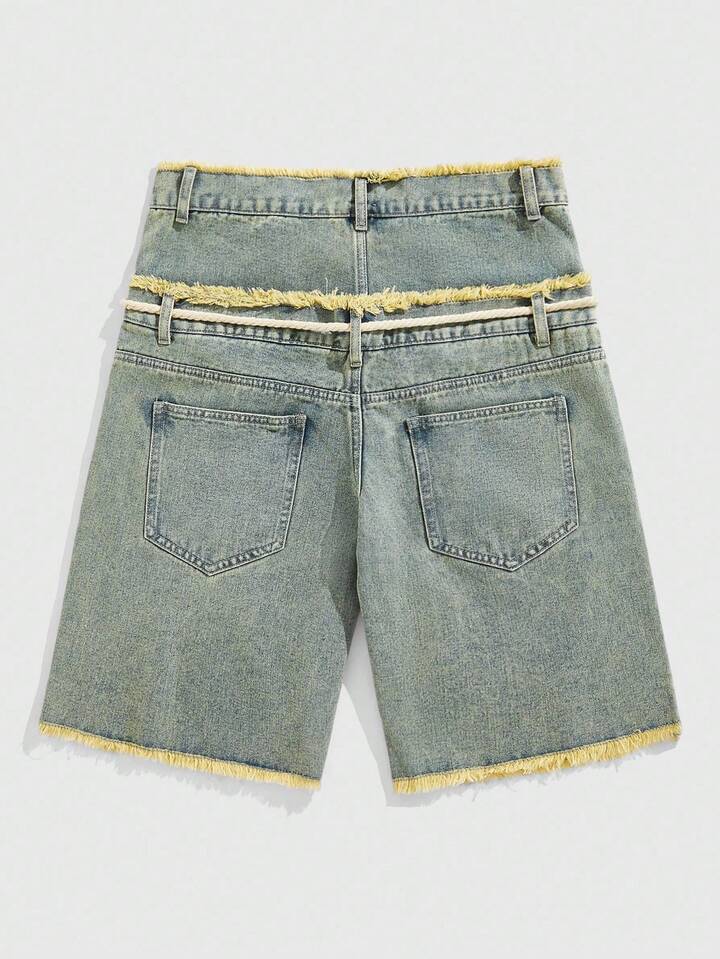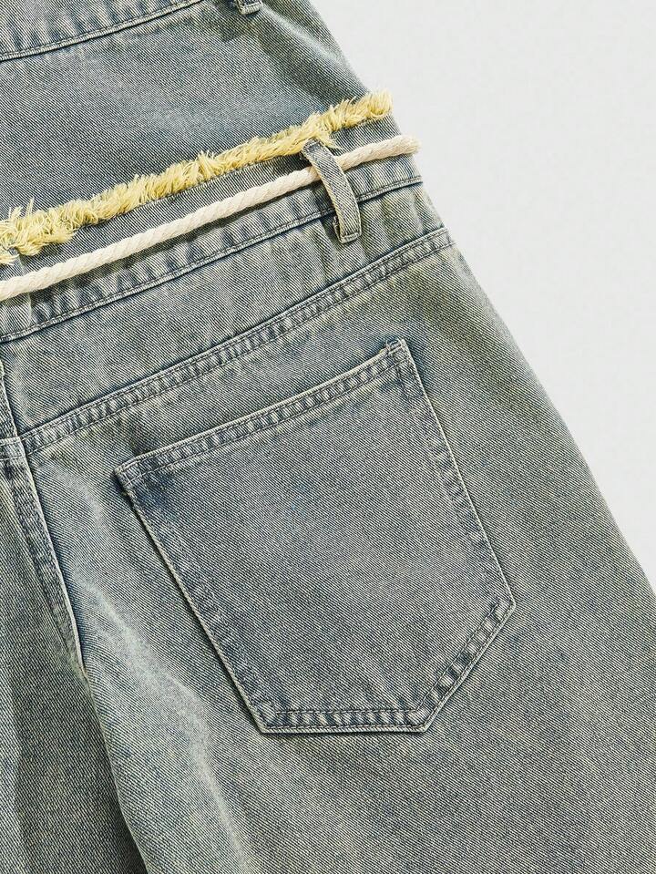 Street Life شورت جينز فضفاض للرجال مع حزام خصر مرصع بالألماس