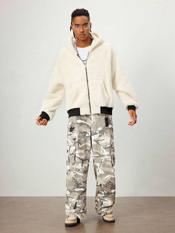 Street Life معطف بقلنسوة فضفاض من قماش مخملي للرجال ، خريف وشتاء