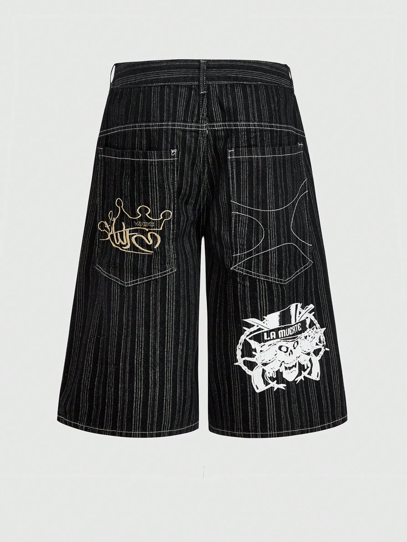 Street Life شورتات جينز فضفاضة مخططة للرجال
