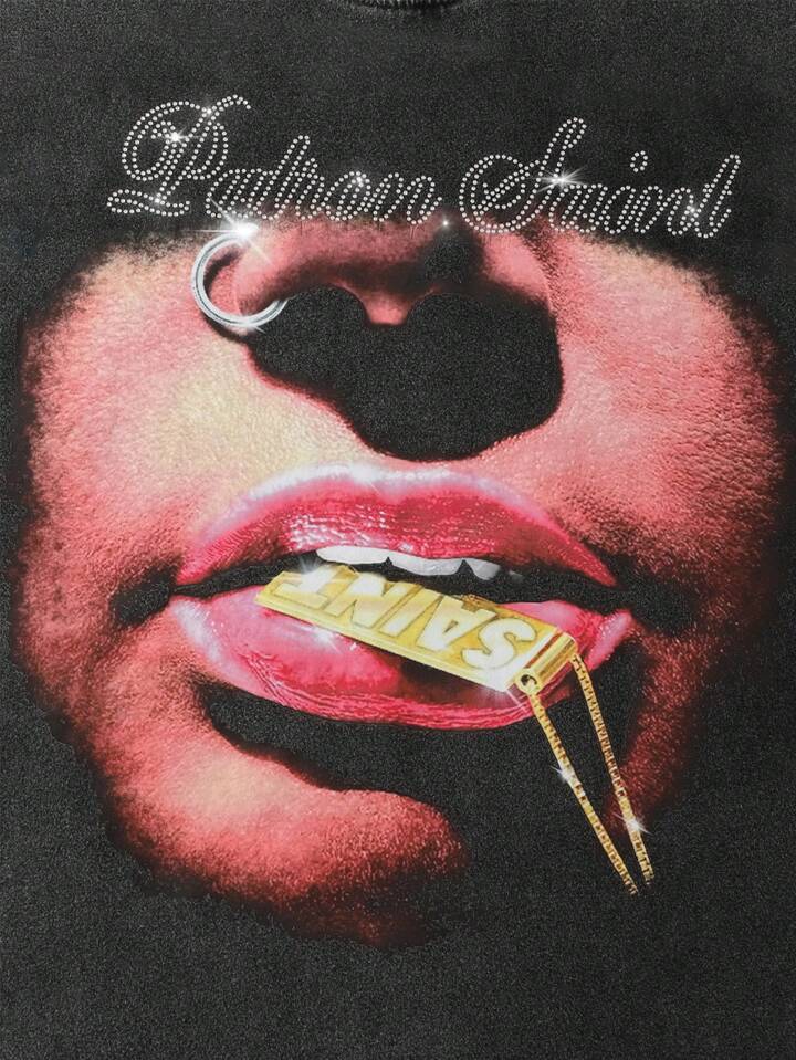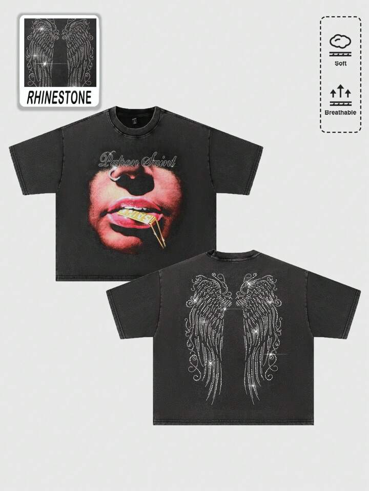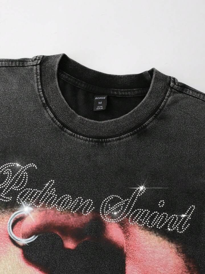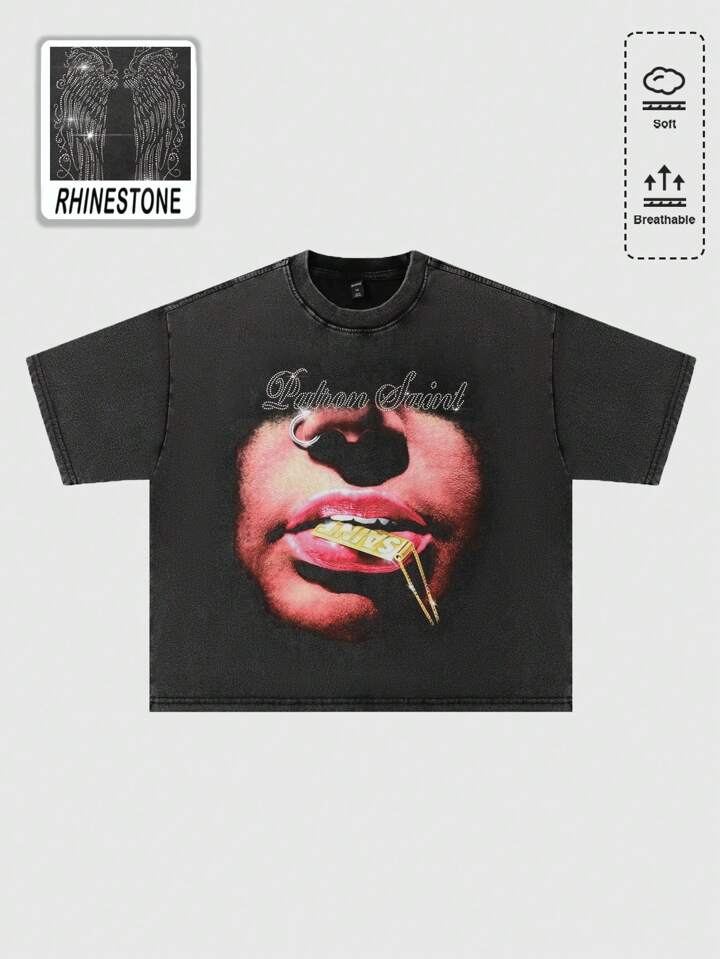 Street Life قميص تي شيرت قصير مطبوع بطباعة الماس اللامع، تصميم جرافيك للرقص والحفلات، قصة فضفاضة مغسولة للرجال
