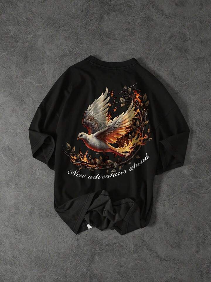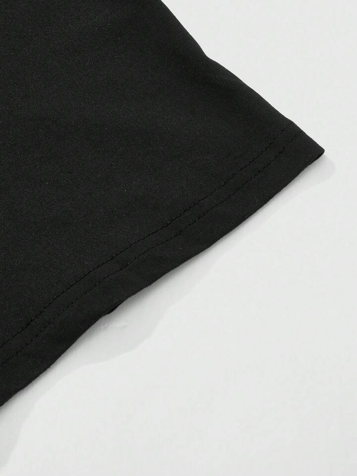 Street Life بلوزة رجالية قصيرة الأكمام فضفاضة وكاجوال، بشعارات وطباعة، بطابع أزياء الشارع الصيفية