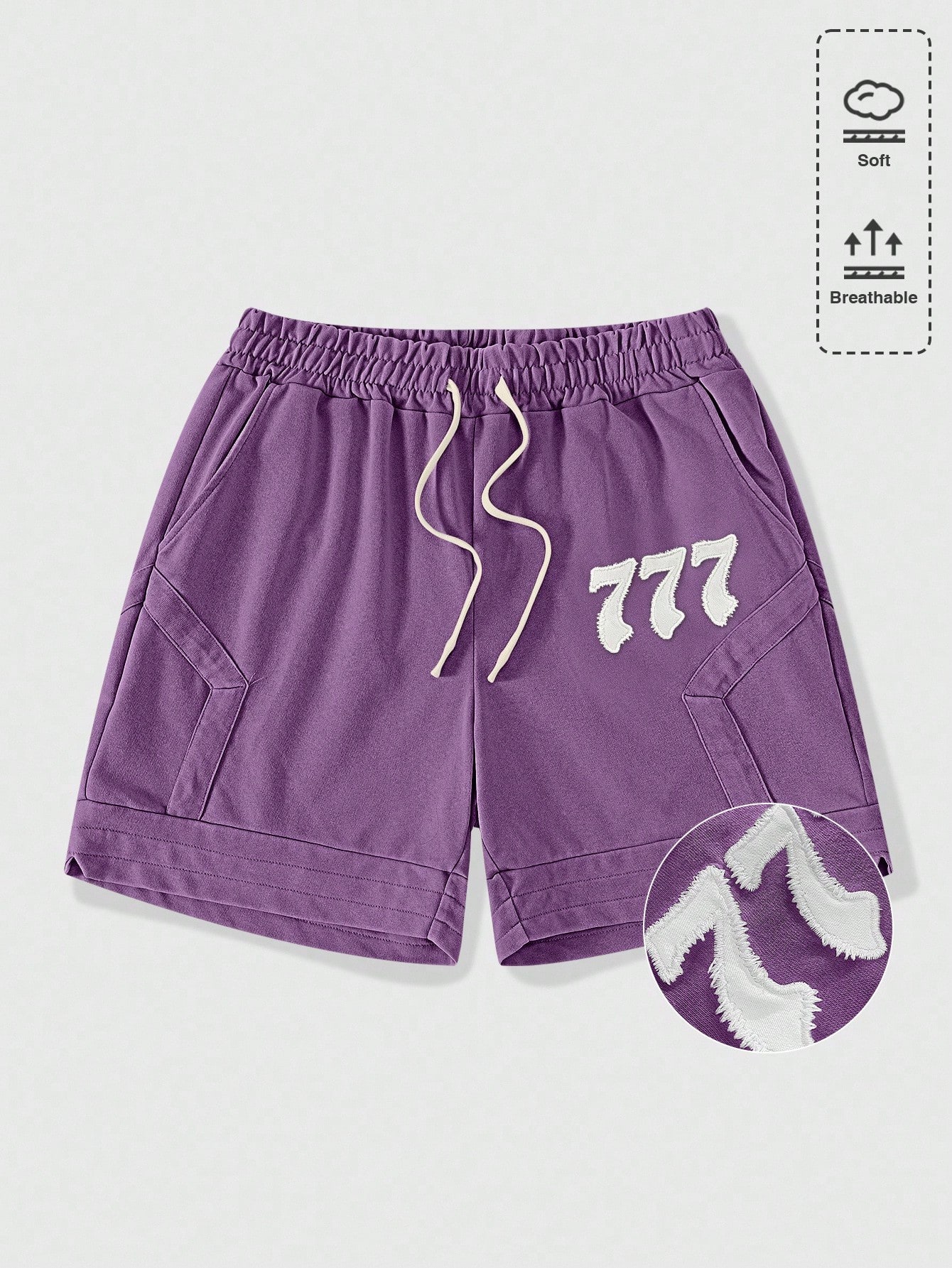 Street Life شورتات كاجوال للرجال بخصر مطاطي وجيوب مع رقعة أرقام