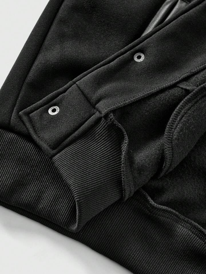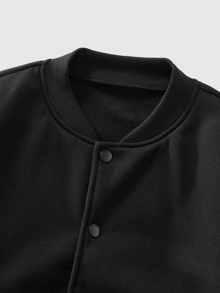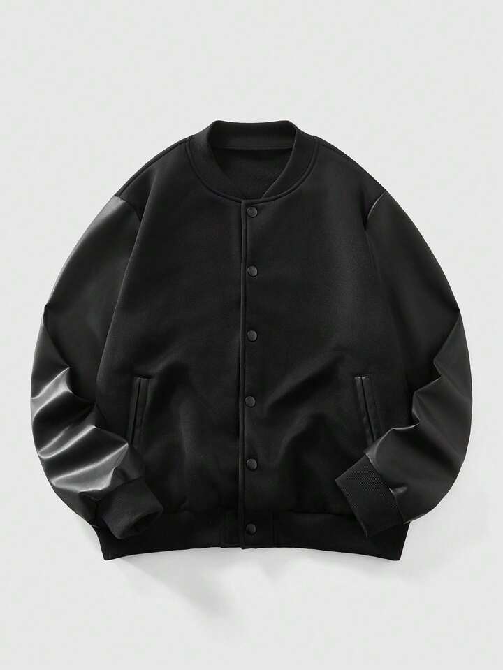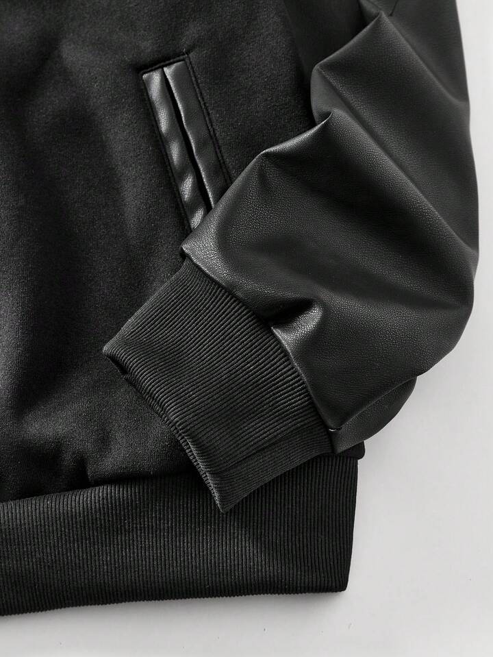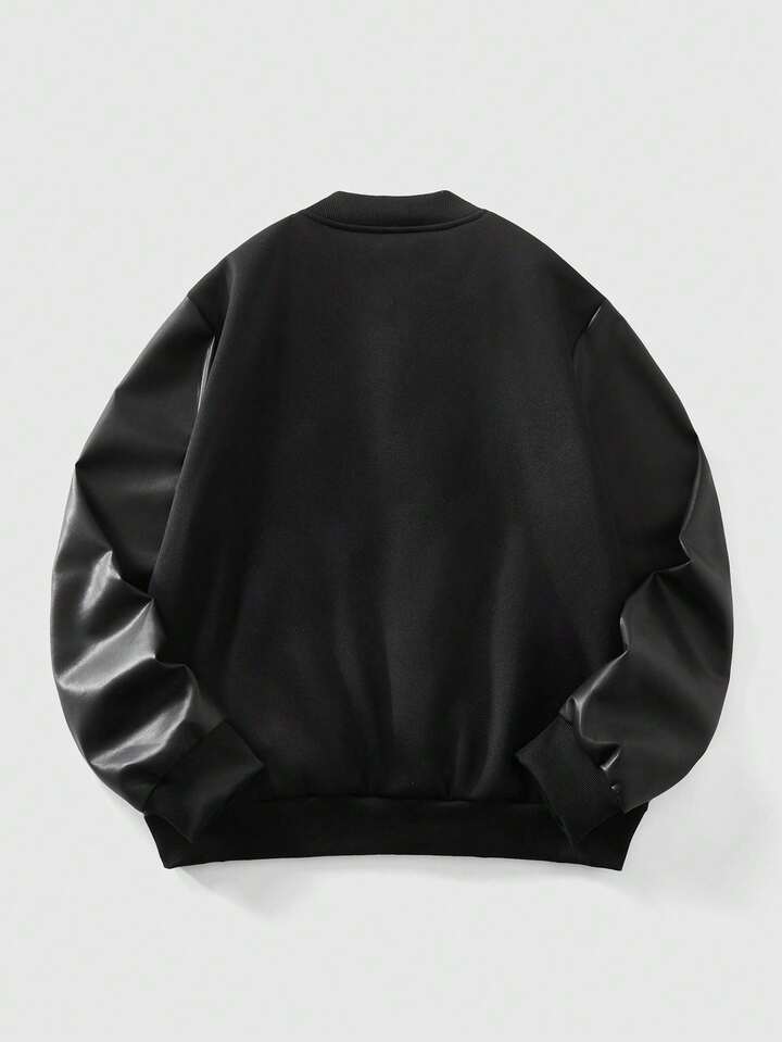 Street Life جاكيت بيسبول كاجوال من الجلد الصناعي (البي يو) بتصميم رقعي وأكمام طويلة أحادية الصدر