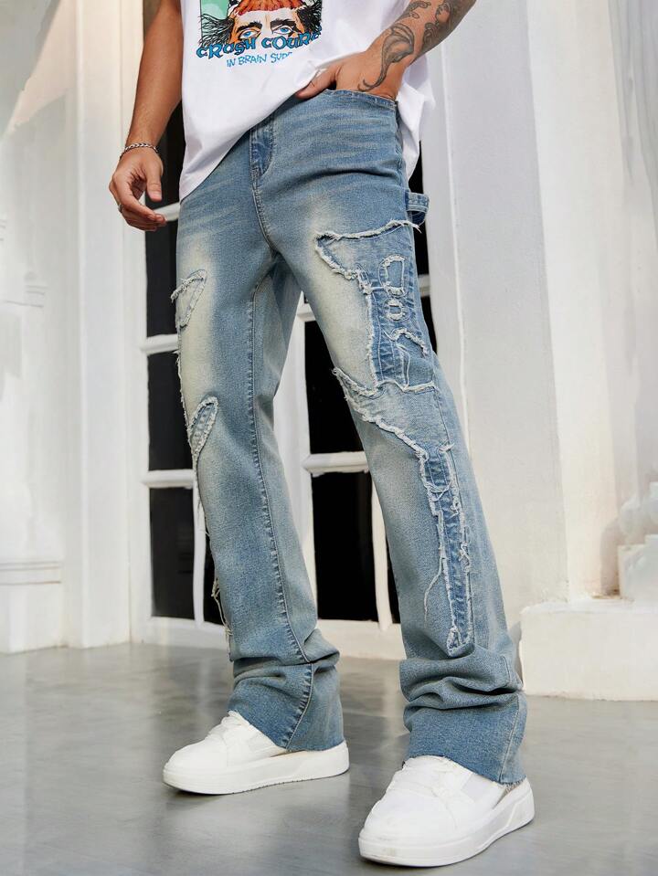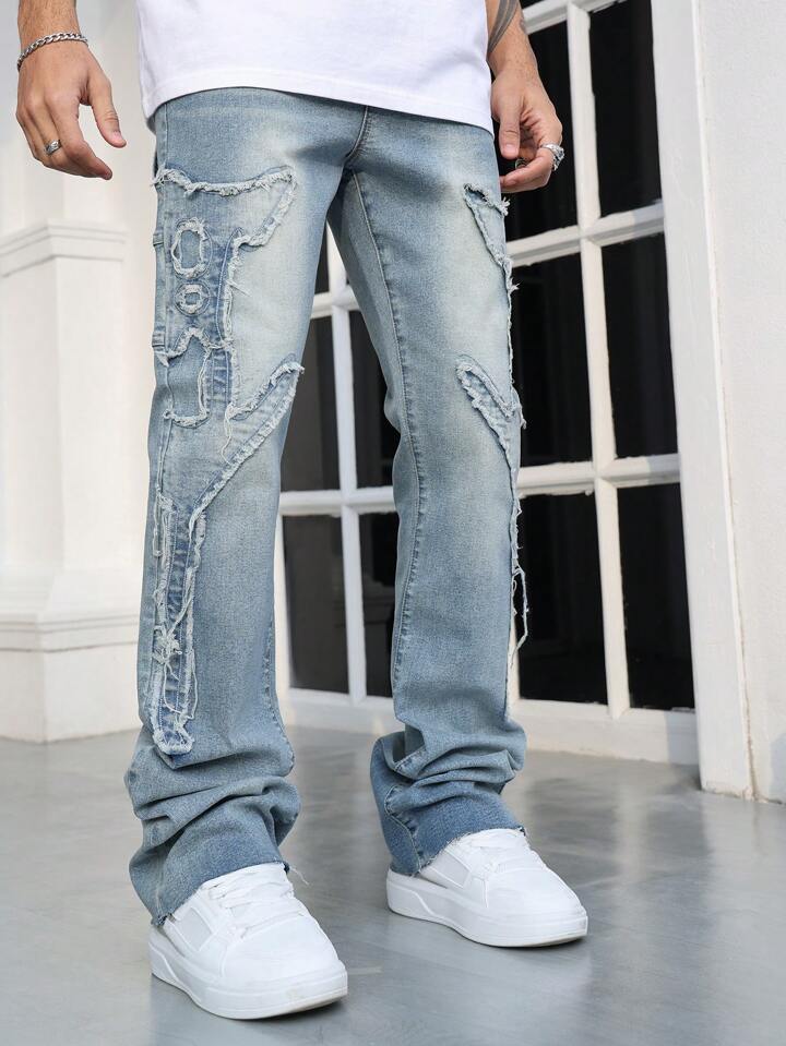 Street Life بنطلون جينز كاجوال متعدد الاستخدامات بجيب مطرز للرجال
