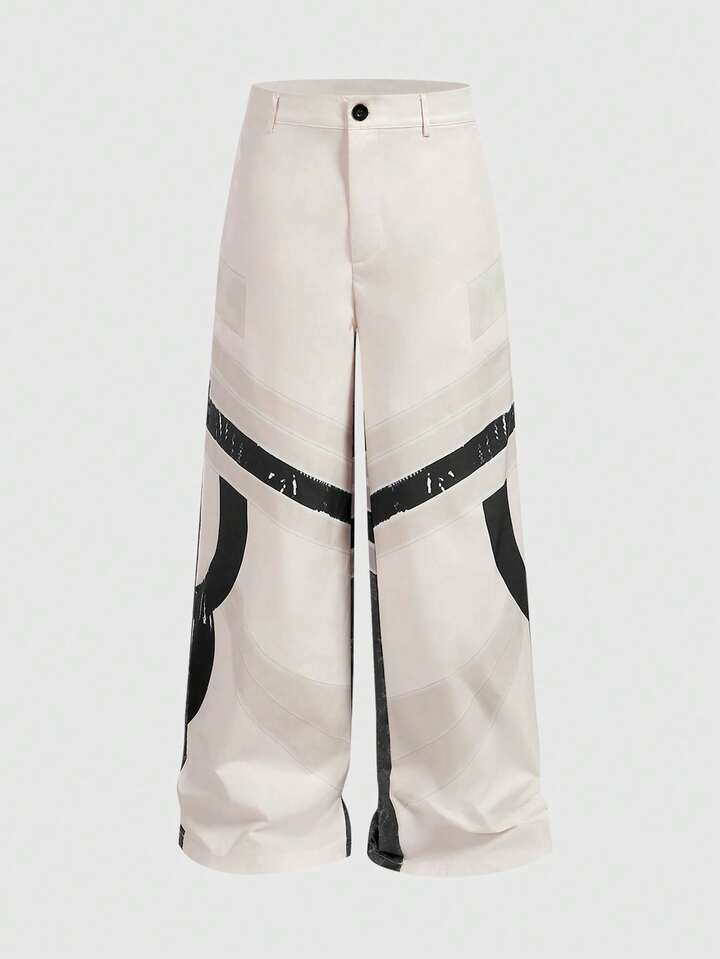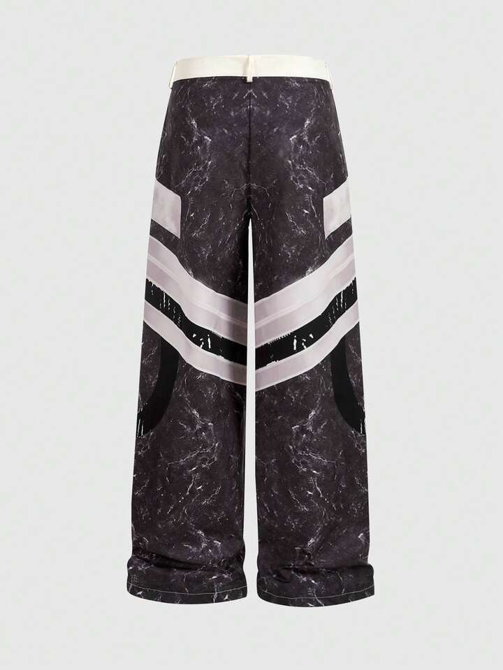 Street Life بنطلون رجالي فضفاض واسع الساق بأزرار وتصميم لاصق