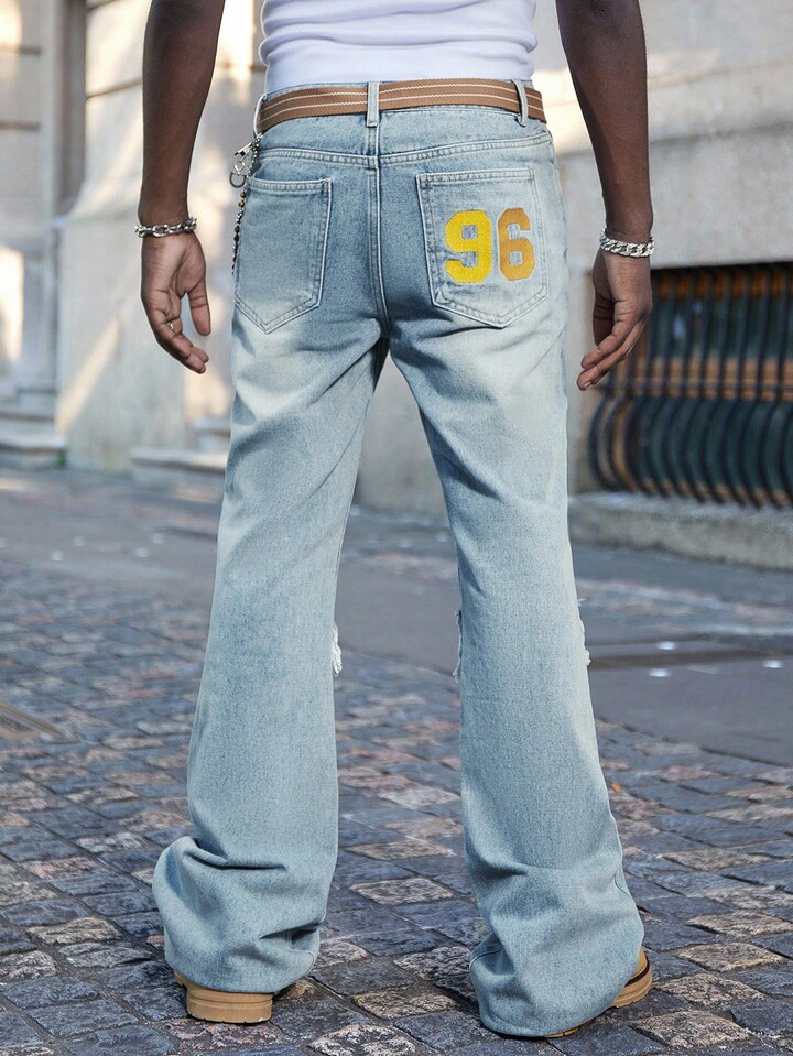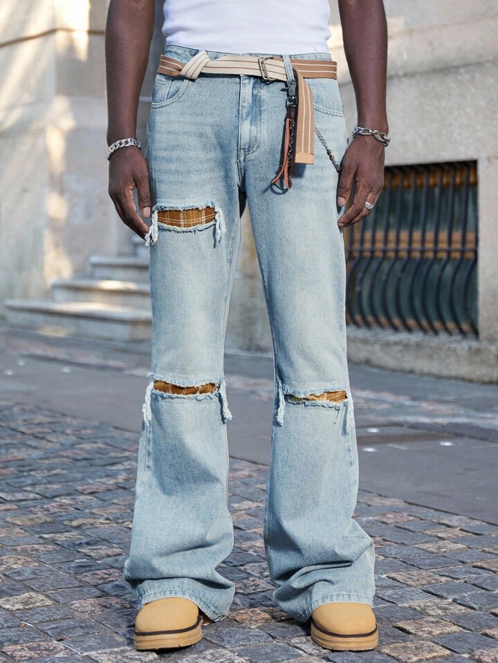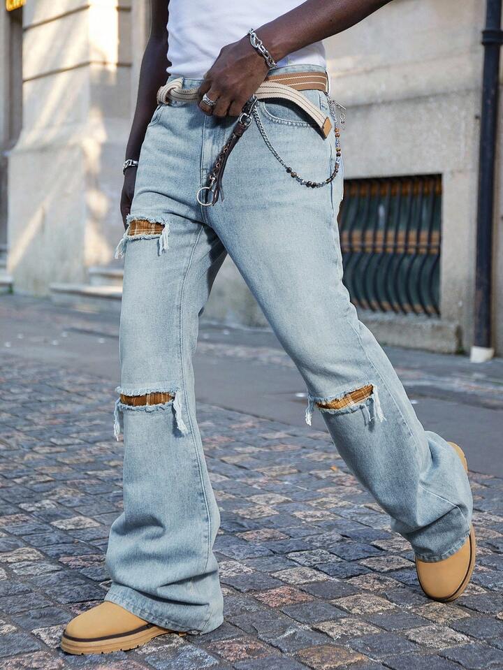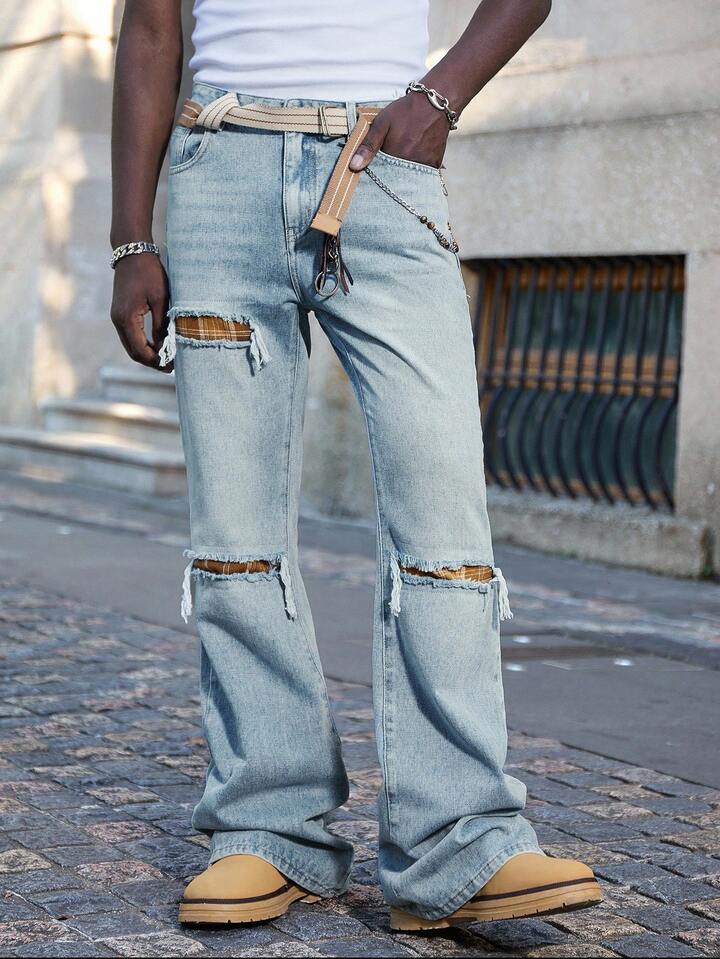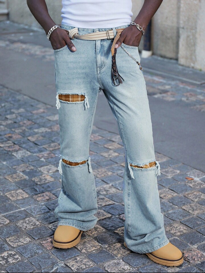 Street Life بنطلون جينز رجالي بتصميم مربعات ملونة وأرجل متسعة